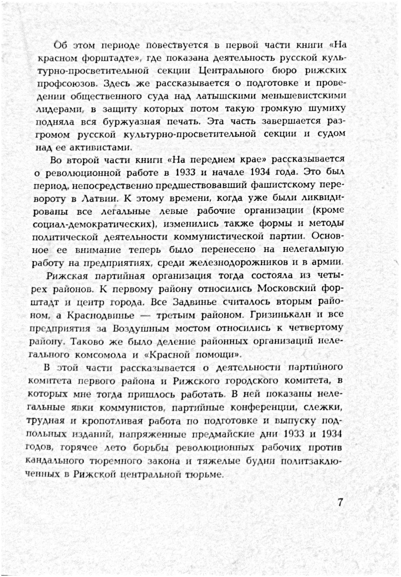 | s001_p006 | girsh rapoport 1 of x.pdf | 6 | preview | ocr | local | not_flagged | Об этом периоде повествуется в первой части книги «На красном форштадте», где показана деятельность русской куль- турно-просветительной секции Центрального бюро рижских профсоюзов. Здесь же рассказывается о подготовке и |