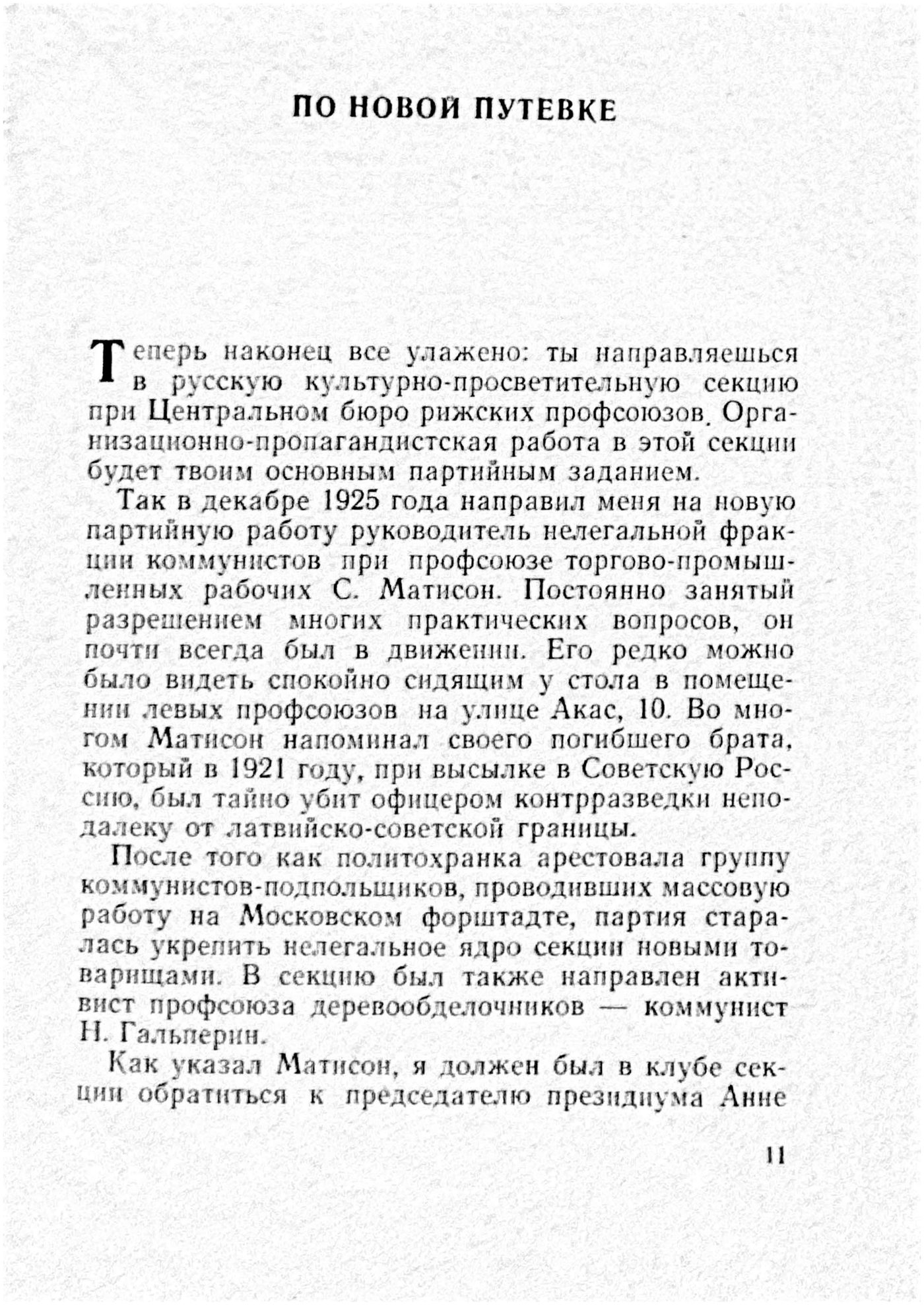 | s001_p007 | girsh rapoport 1 of x.pdf | 7 | preview | ocr | local | not_flagged | ПО НОВОЙ ПУТЕВКЕ Петерь наконец все улажено: ты направляешься в русскую культурно-просветительную секцию при Центральном бюро рижских профсоюзов. Орга- низационно-пропагандистская работа в этой секции будет твоим основны |
