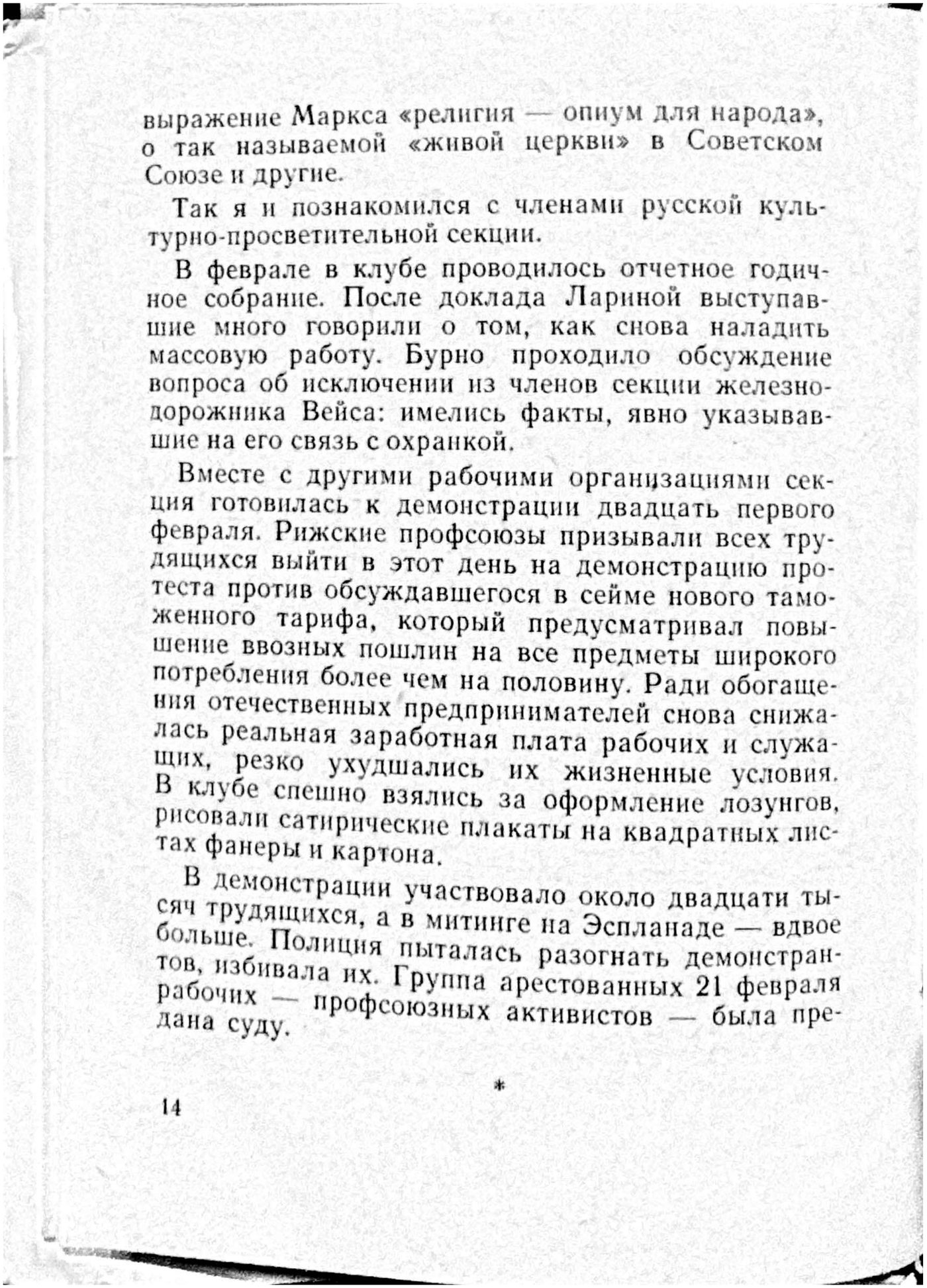 | s001_p008 | girsh rapoport 1 of x.pdf | 8 | preview | ocr | local | not_flagged | выражение Маркса «религия — опиум для народа», о так называемой «живой церкви» в Советском Союзе и другие. Так я и познакомился с членами русской куль- турно-просветительной секции. В феврале в клубе проводилось отчетное |