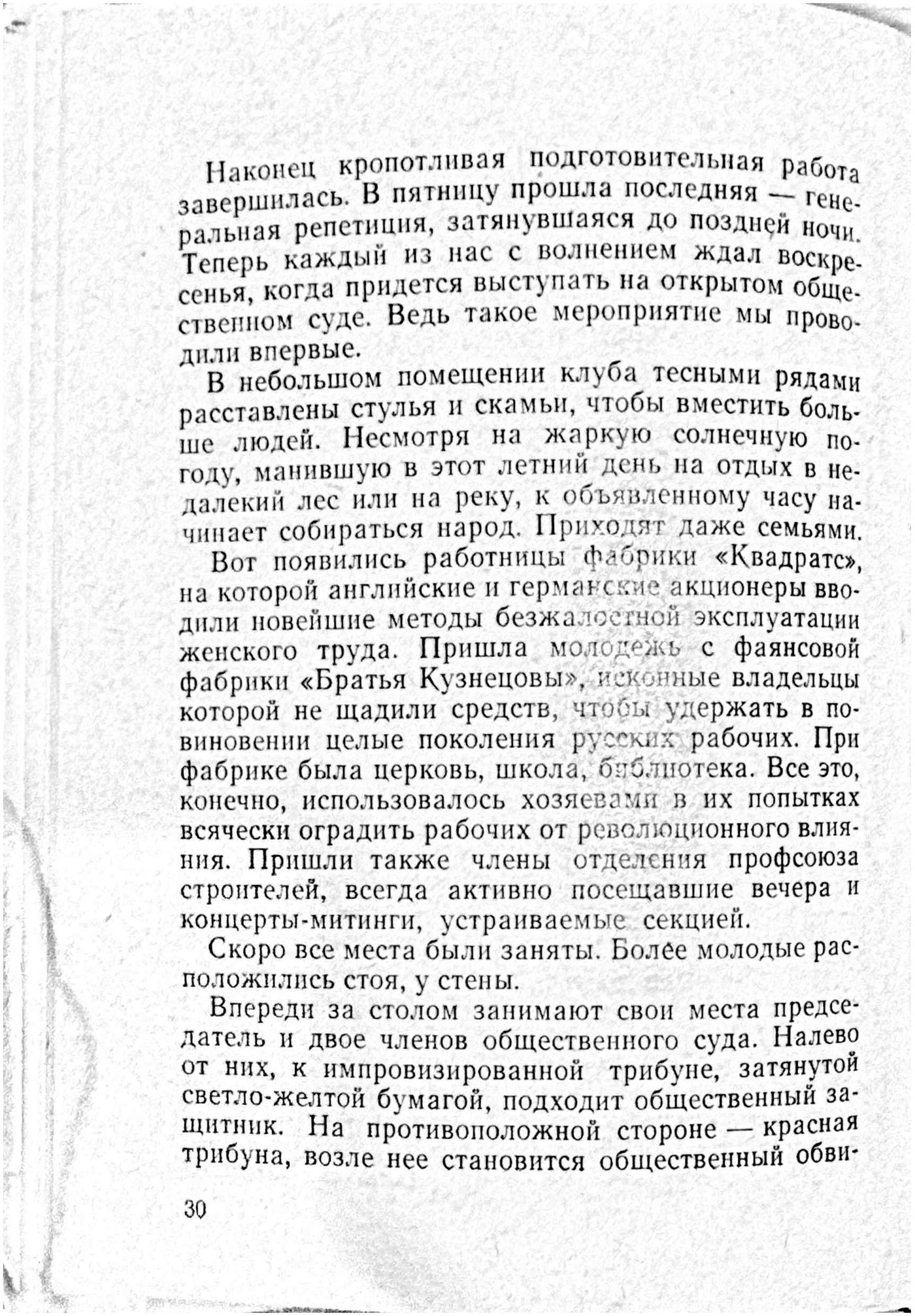 | s001_p023 | girsh rapoport 1 of x.pdf | 23 | preview | ocr | local | not_flagged | чен рабочий «Кузнецовки» Иван Терентьев, а я взял на себя обязанности общественного обвинителя. Я составил обвинительный акт из двух десятков пунктов, в которых подробно перечислялись дей- ствия меньшевистских лидеров, н |