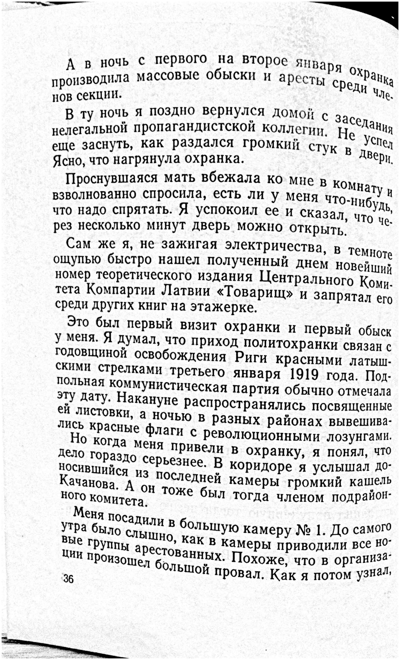 | s002_p007 | girsh 2 of x.pdf | 7 | preview | ocr | local | not_flagged | Ы——=——_ м Аа ое бы января ОХранк производила массо Ресты среди и нов секции. В ту ночь я поздно вернулся домой с аседани, нелегальной пропагандистской коллегии. Не Усе еще заснуть, как раздался громкий стук в Двери Ясн |