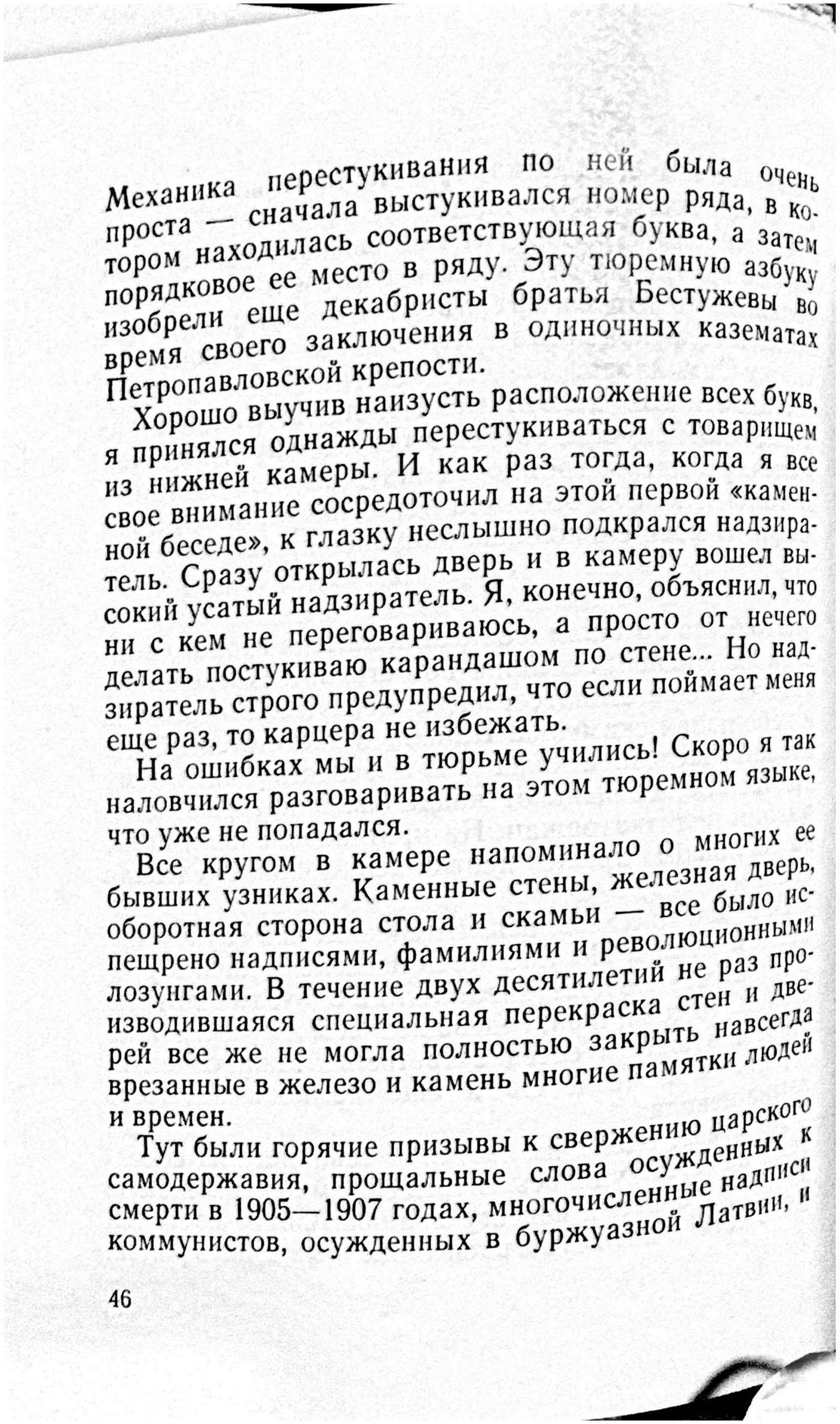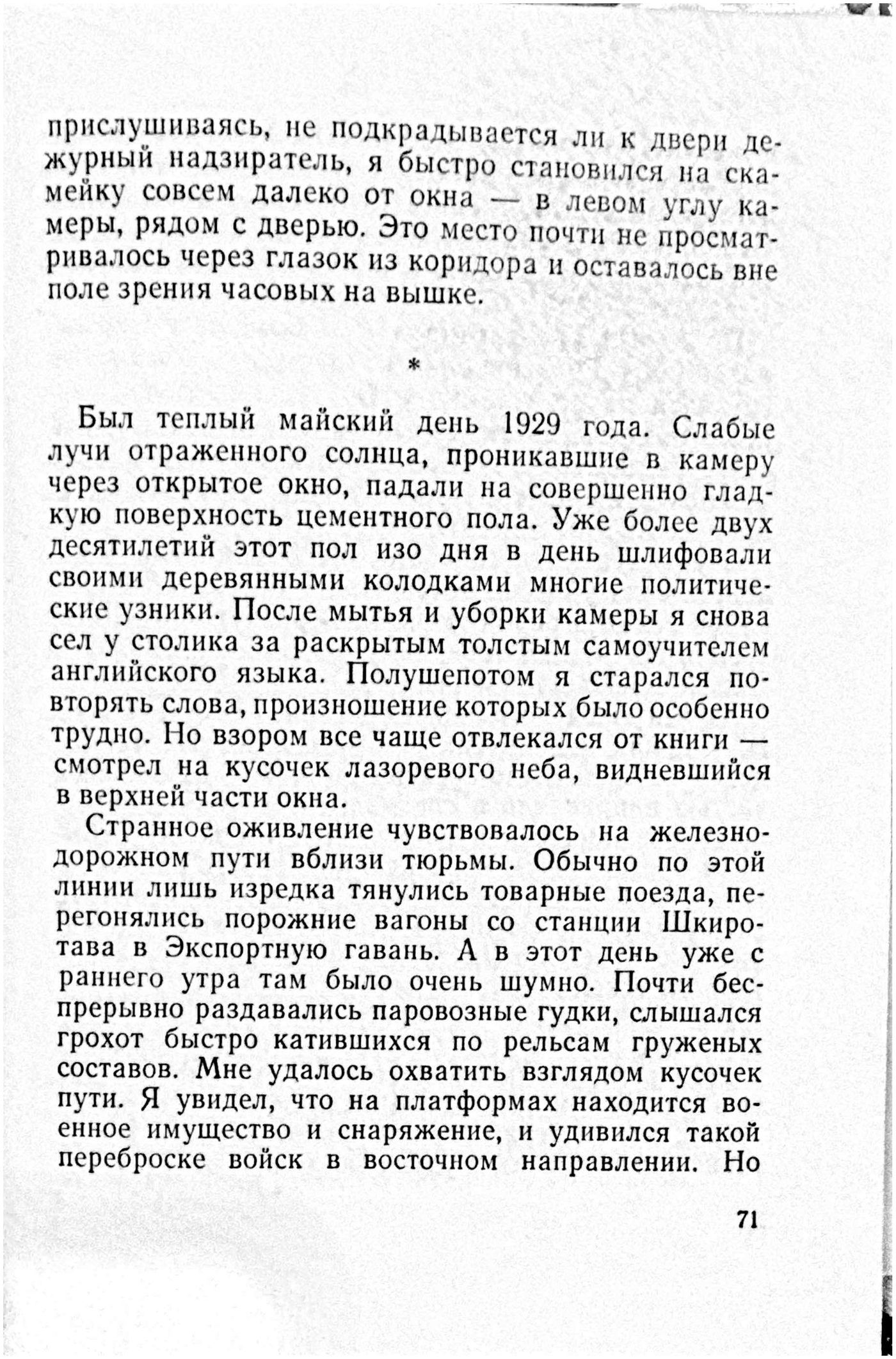 | s003_p020 | girsh 3 of x.pdf | 20 | preview | ocr | local | not_flagged | БР елеесят №“ к прислушиваясь, не подкрадывается ли к двери де- журный надзиратель, я быстро становился на ска- мейку совсем далеко от окна — в левом углу ка- меры, рядом с дверью. Это место почти не просмат- ривалось че |