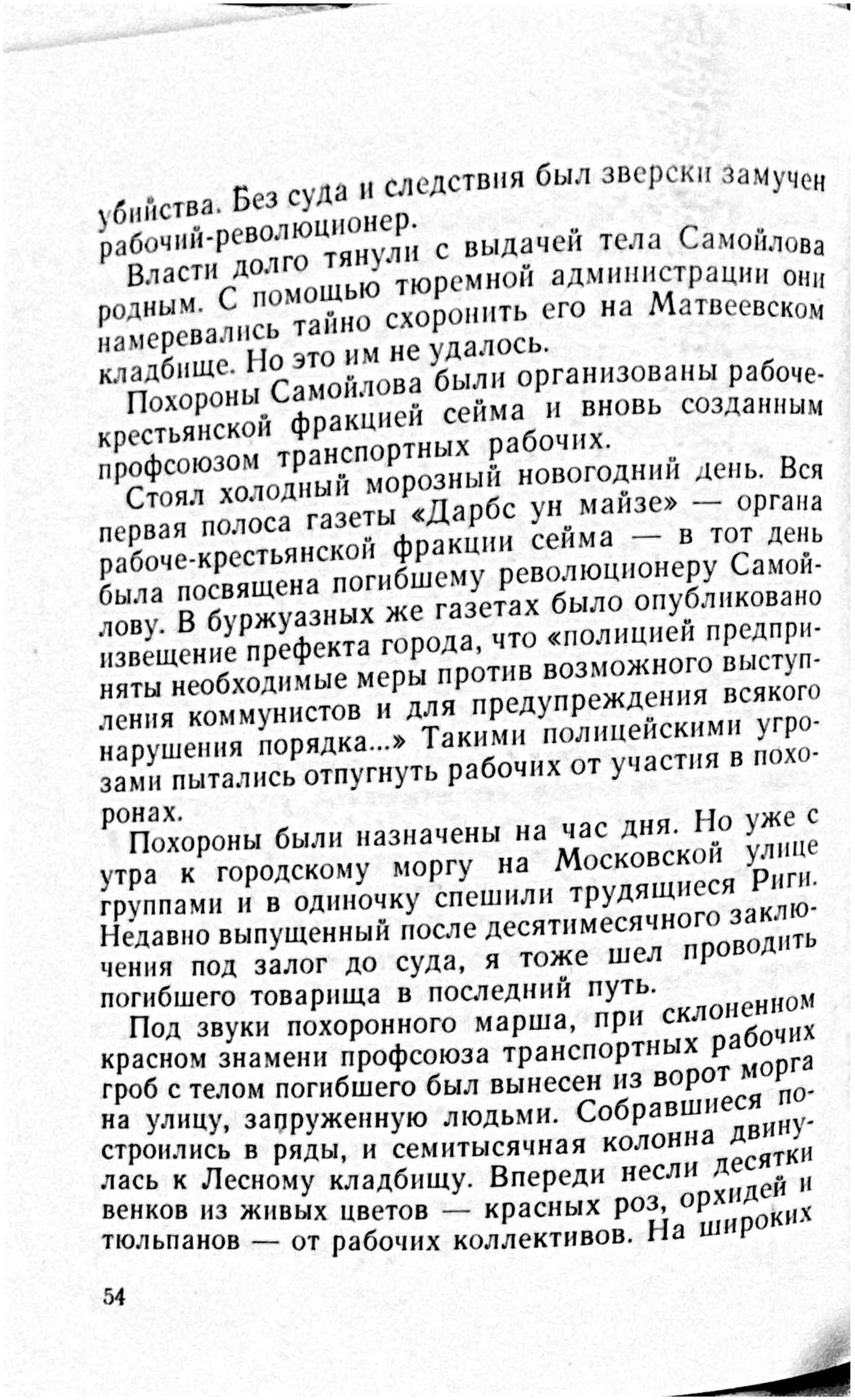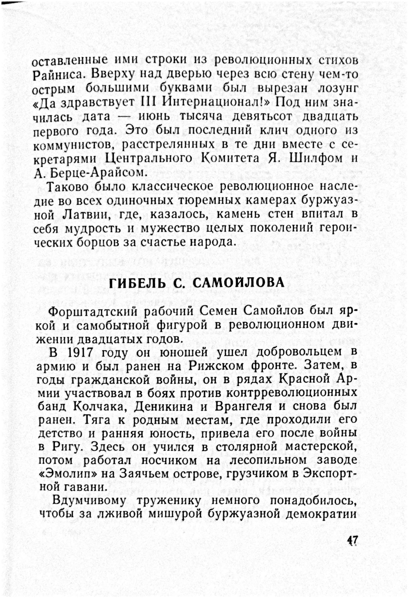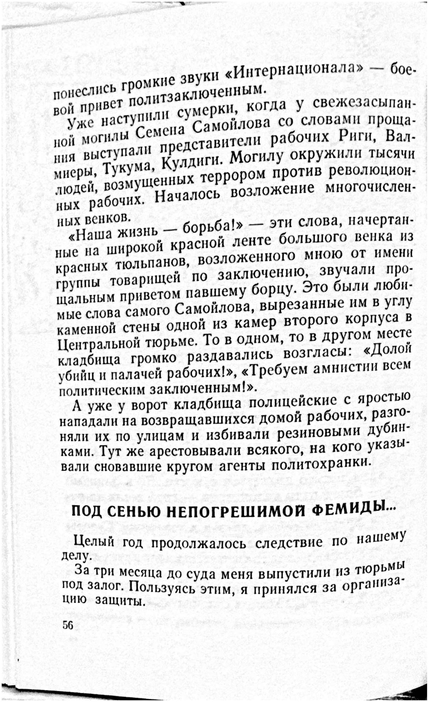 | s003_p005 | girsh 3 of x.pdf | 5 | preview | ocr | local | not_flagged | понеслись громкие звуки «Интернационала» — бое- “ привет политзаключенным. а наступили сумерки, когда у свежезасыпан- ной МОГИЛЫ Семена Самойлова со словами проща- ния выступали представители рабочих Риги, Вал- миеры, |
