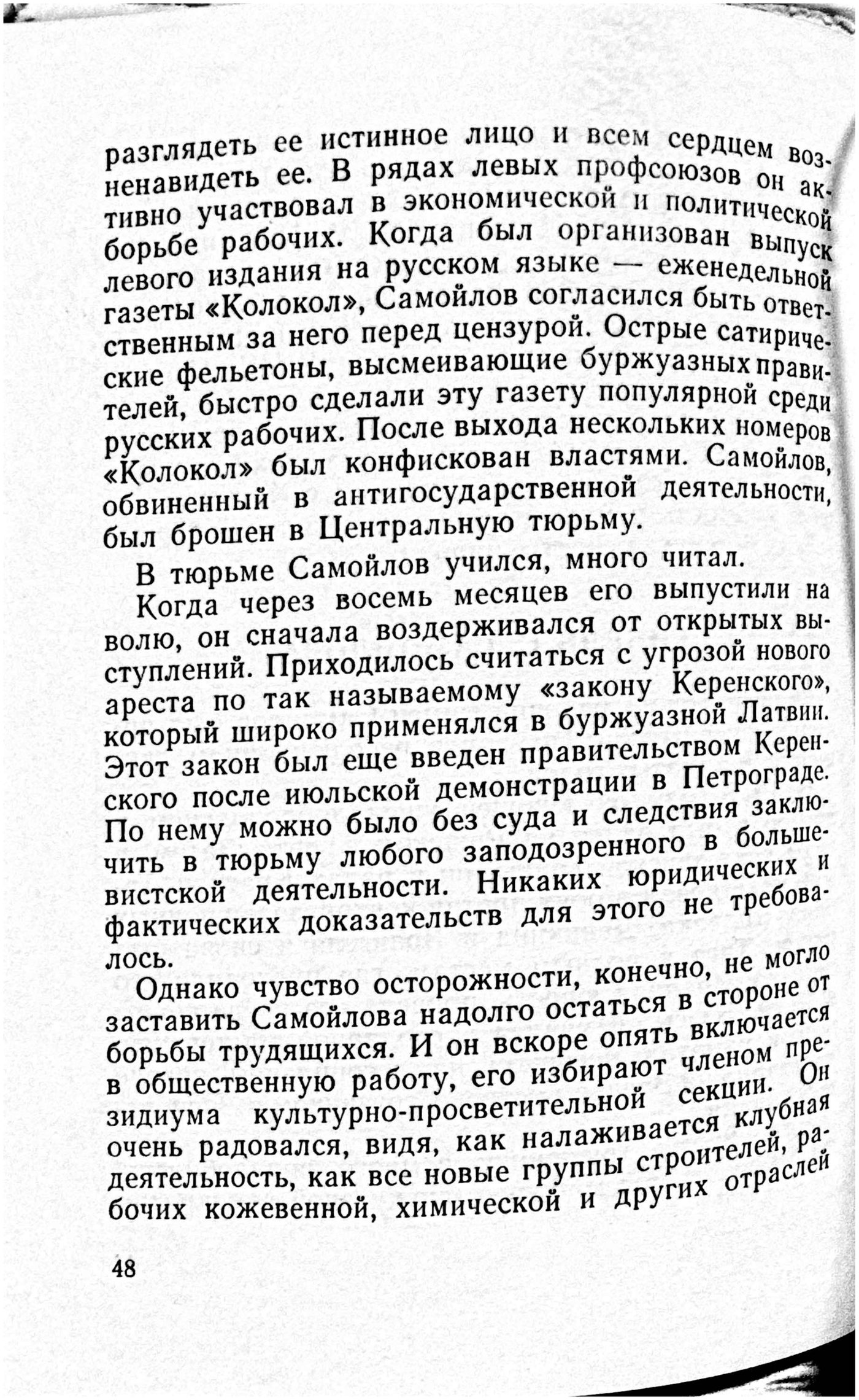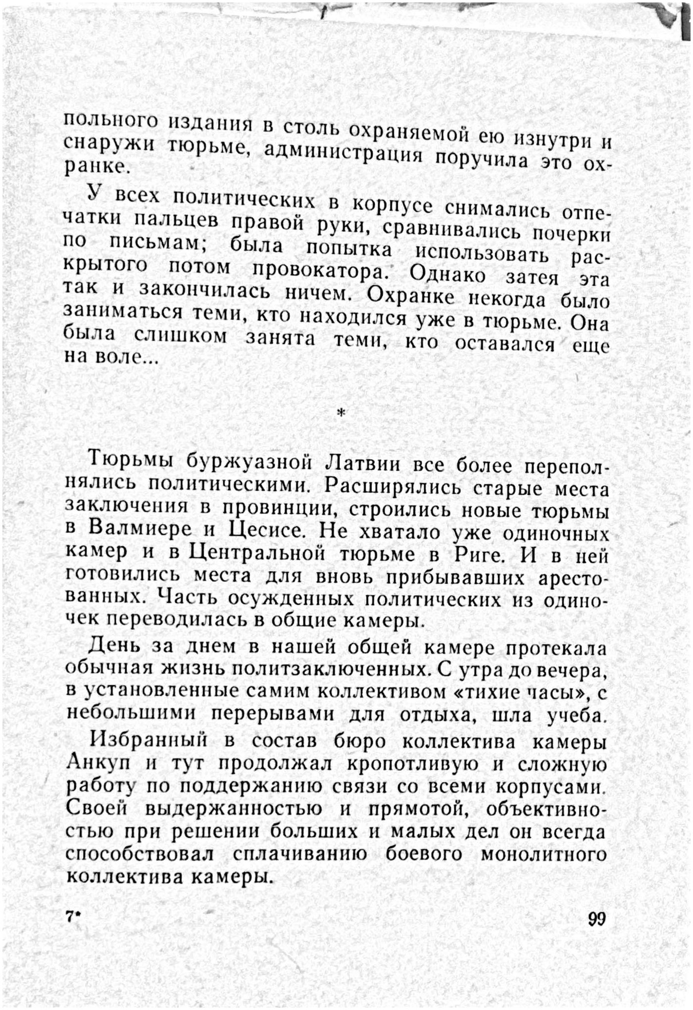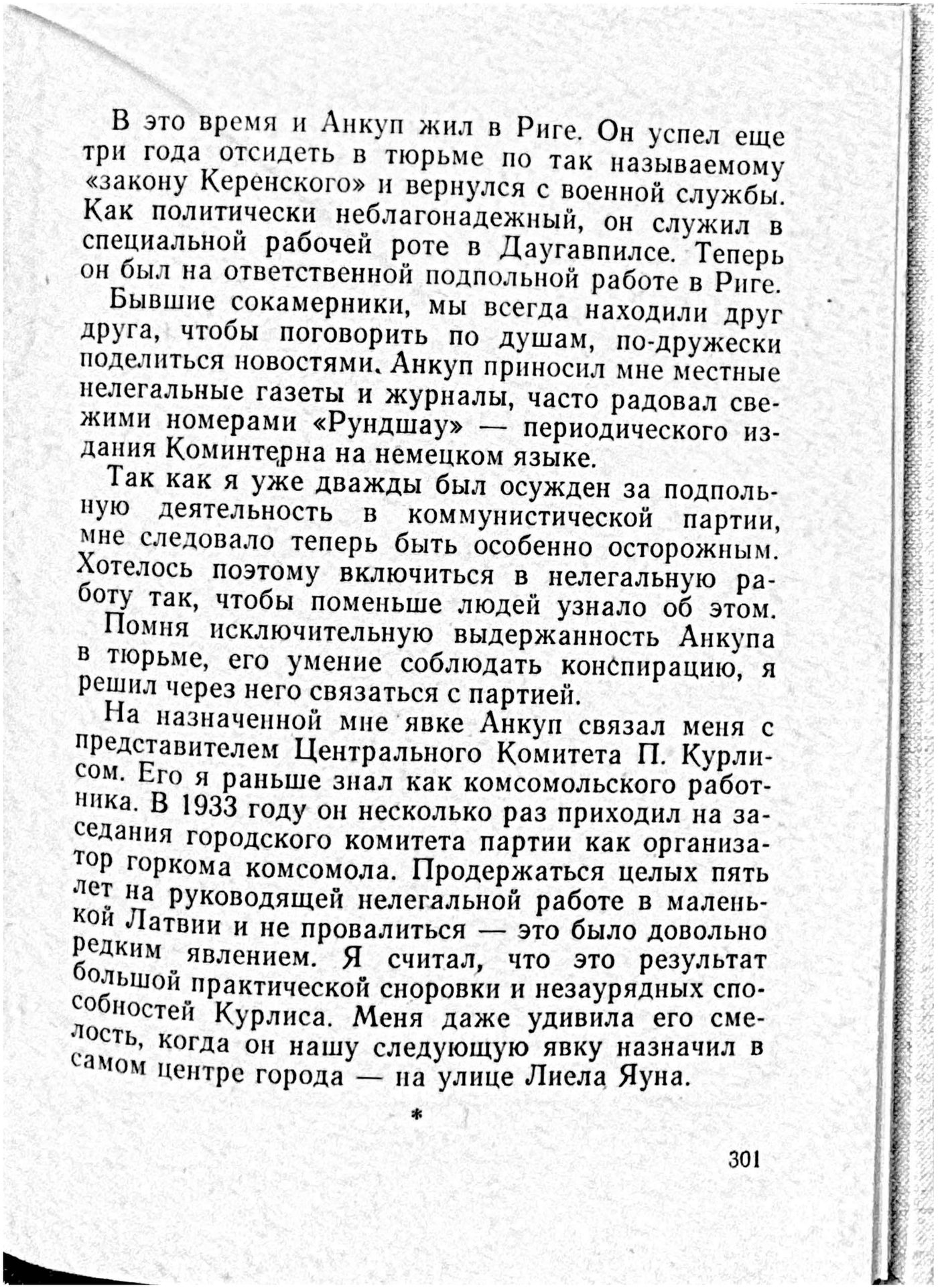 | s009_p039 | girsh 9 of x.pdf | 39 | preview | ocr | local | not_flagged | В это время и Анкуп жил в Риге. Он успел еще | три года отсидеть в тюрьме по так называемому р: «закону Керенского» и вернулся с военной службы. | Как политически неблагонадежный, он служил в | Е специальной рабочей роте |