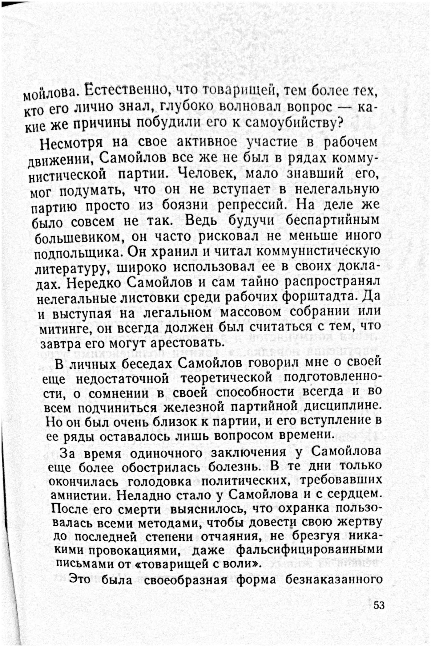 | s003_p002 | girsh 3 of x.pdf | 2 | preview | ocr | local | not_flagged | —_ мойлова. Естественно, что товарищей, тем более тех, кто его лично знал, глубоко волновал вопрос — ка- кие же причины побудили его к самоубийству? Несмотря на свое активное участие в рабочем движении, Самойлов все же |