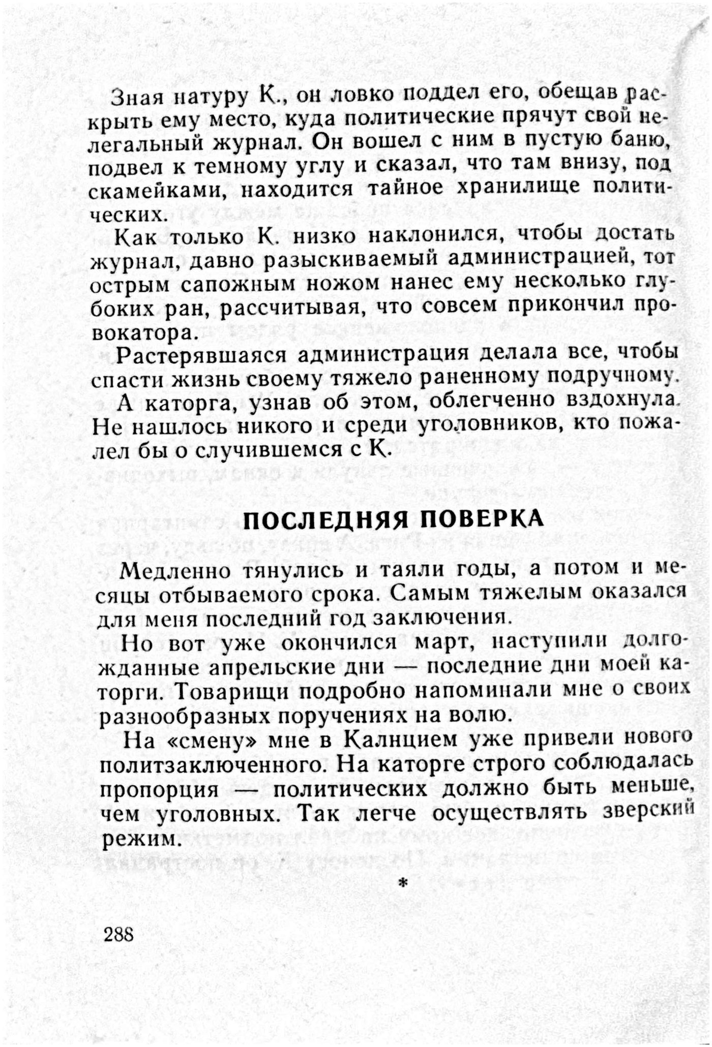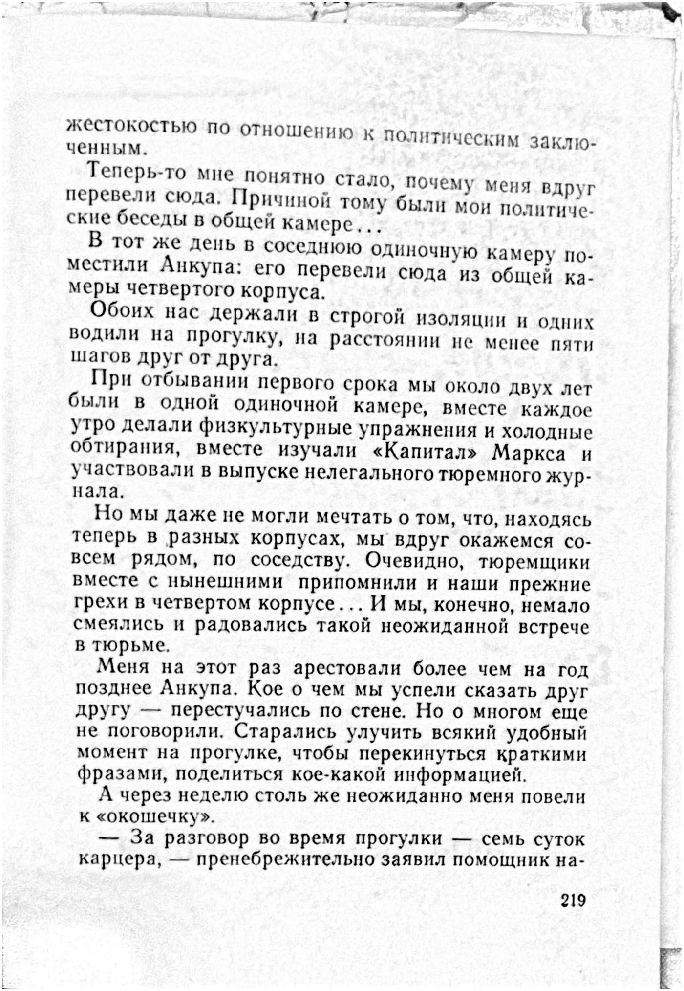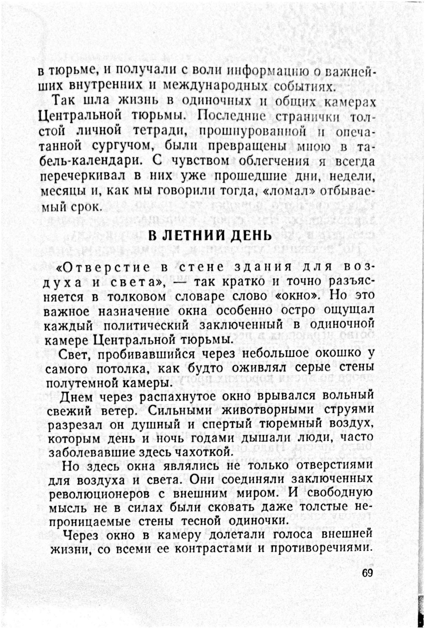 | s003_p018 | girsh 3 of x.pdf | 18 | preview | ocr | local | not_flagged | в тюрьме, и получали с воли информацию о важней- ших внутренних и международных событиях. Так шла жизнь в одиночных и общих камерах Центральной тюрьмы. Последние странички тол- стой личной тетради, прошпурованной и опеч |