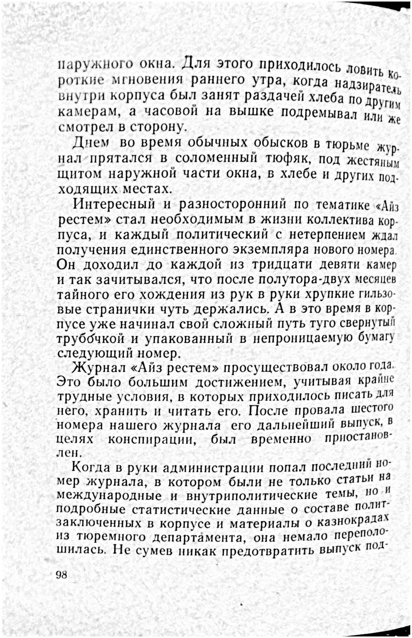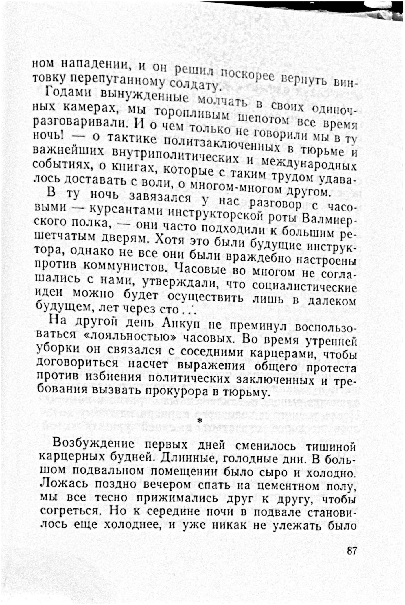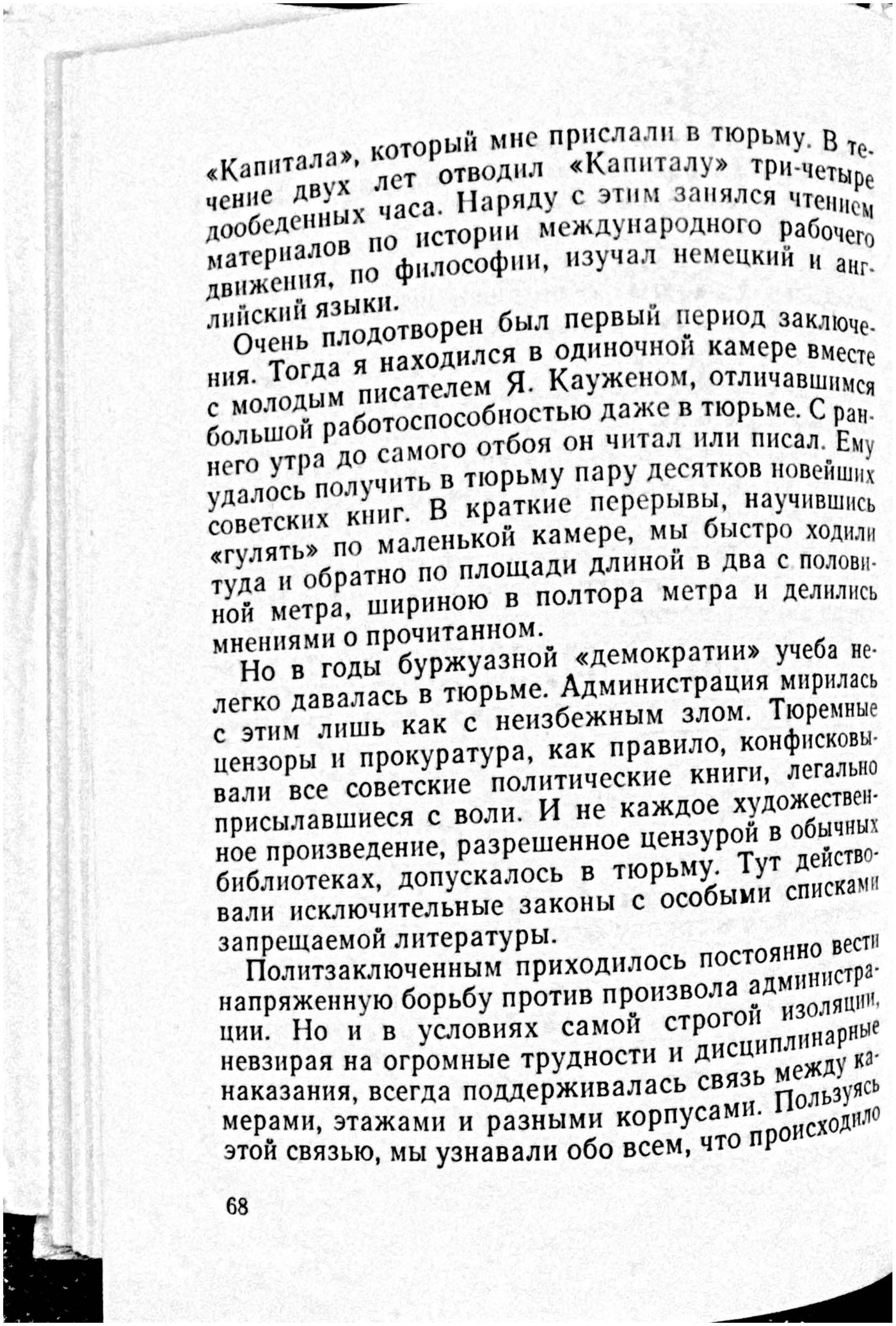 | s003_p018 | girsh 3 of x.pdf | 18 | preview | ocr | local | not_flagged | в тюрьме, и получали с воли информацию о важней- ших внутренних и международных событиях. Так шла жизнь в одиночных и общих камерах Центральной тюрьмы. Последние странички тол- стой личной тетради, прошпурованной и опеч |