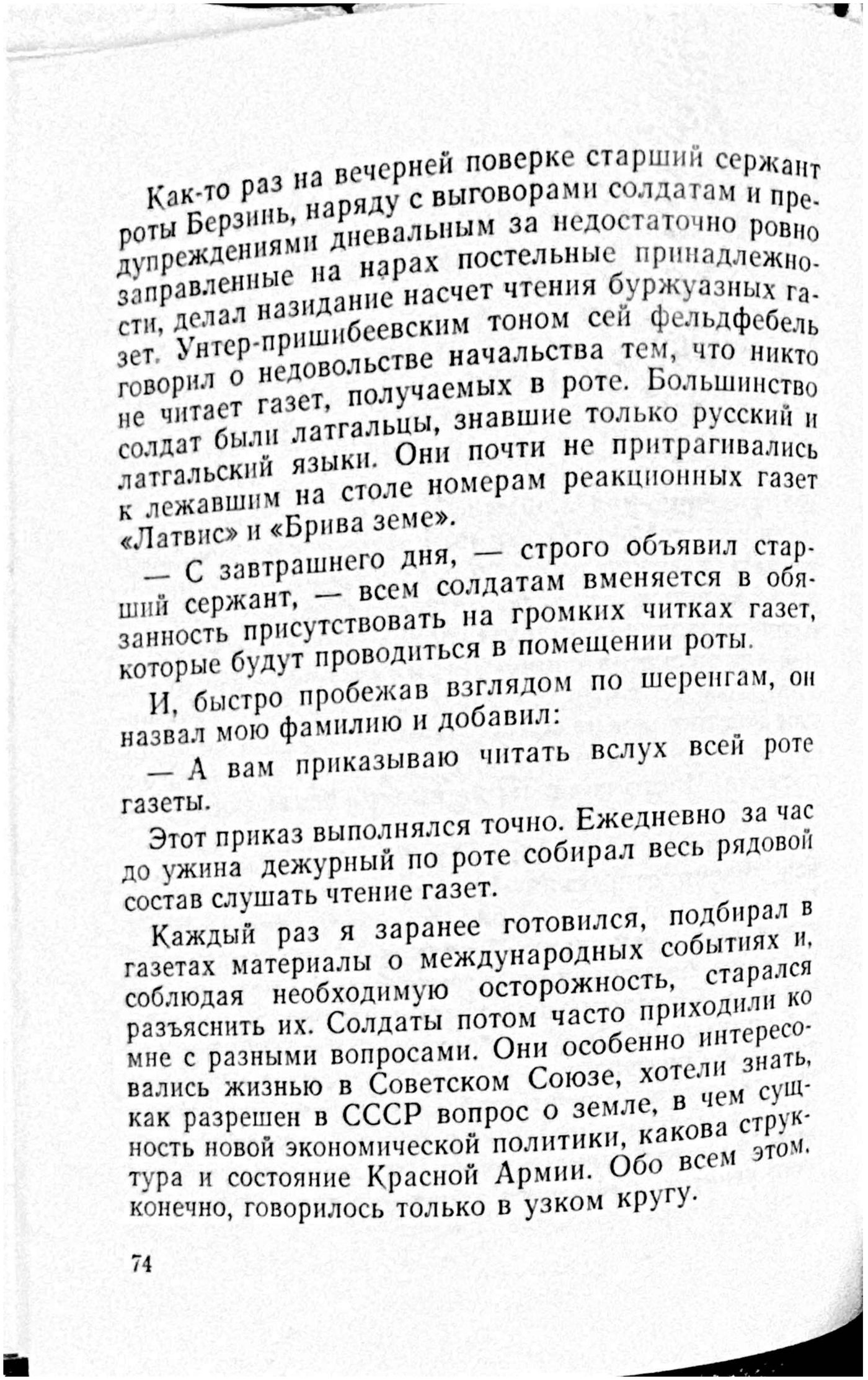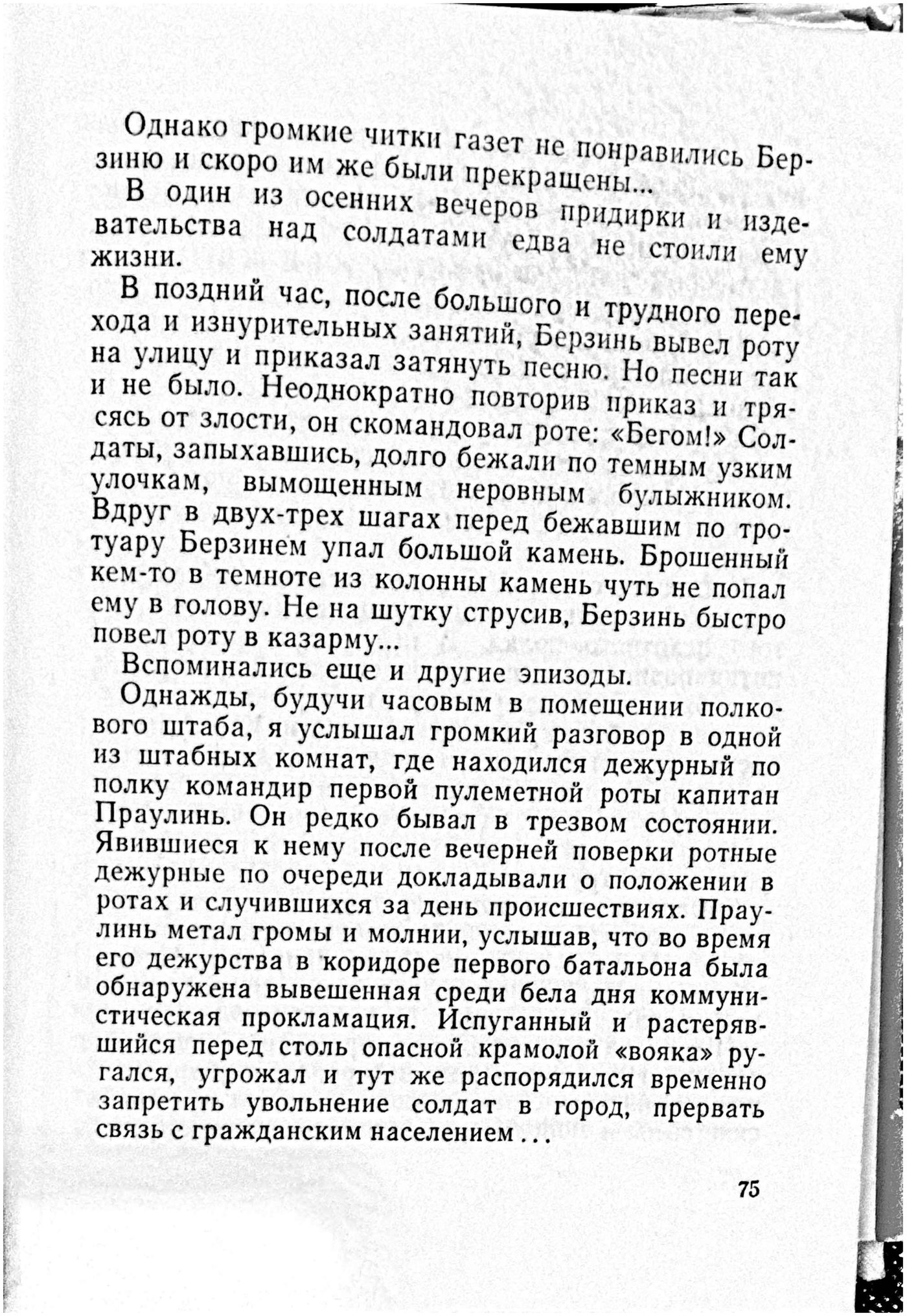| s003_p024 | girsh 3 of x.pdf | 24 | preview | ocr | local | not_flagged | Однако громкие читки газет не понравились Бер- зиню и скоро им же были п ЕР В ли прекращены... один из осенних вечеров придирки и изде- вательства над солдатами ‘едва не стоили ему ЖИЗНИ. В поздний час, после большого и |