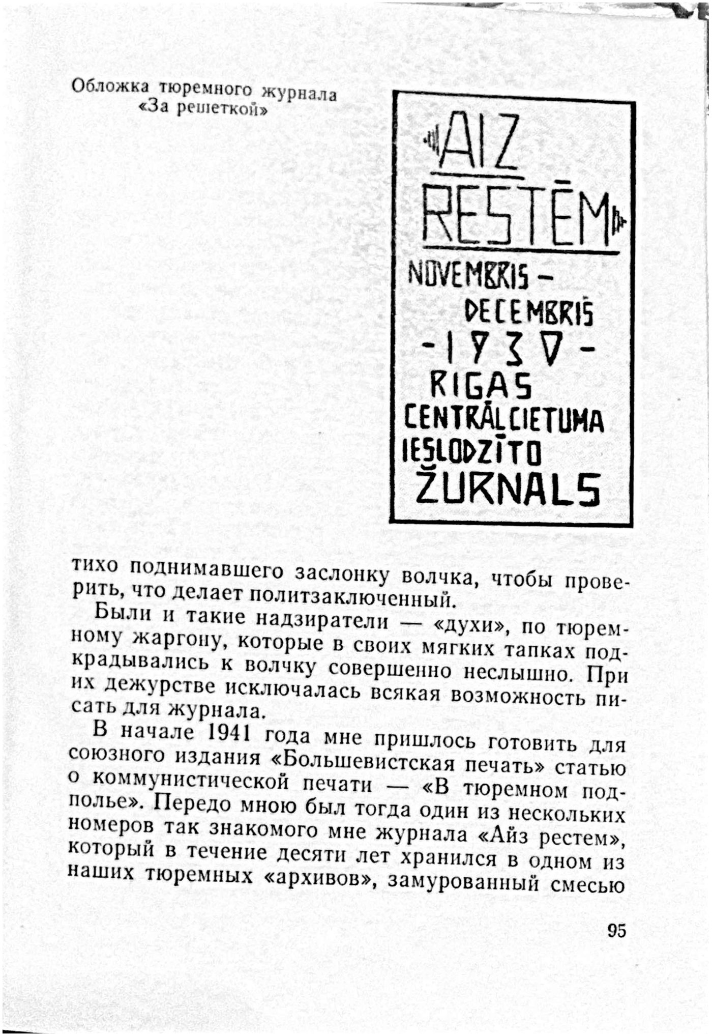 | s004_p014 | girsh 4 of x.pdf | 14 | preview | ocr | local | not_flagged | ——ыля>> оеня | у Обложка тюремного журнала «За решеткой» ча еаньсчыааниць р И ННЫВИЬ СЕНТ С СЕТИИА ИКМАЕ5 тихо поднимавшего заслонку волчка, чтобы прове- рить, что делает политзаключенный. Были и такие надзиратели — «ду |
