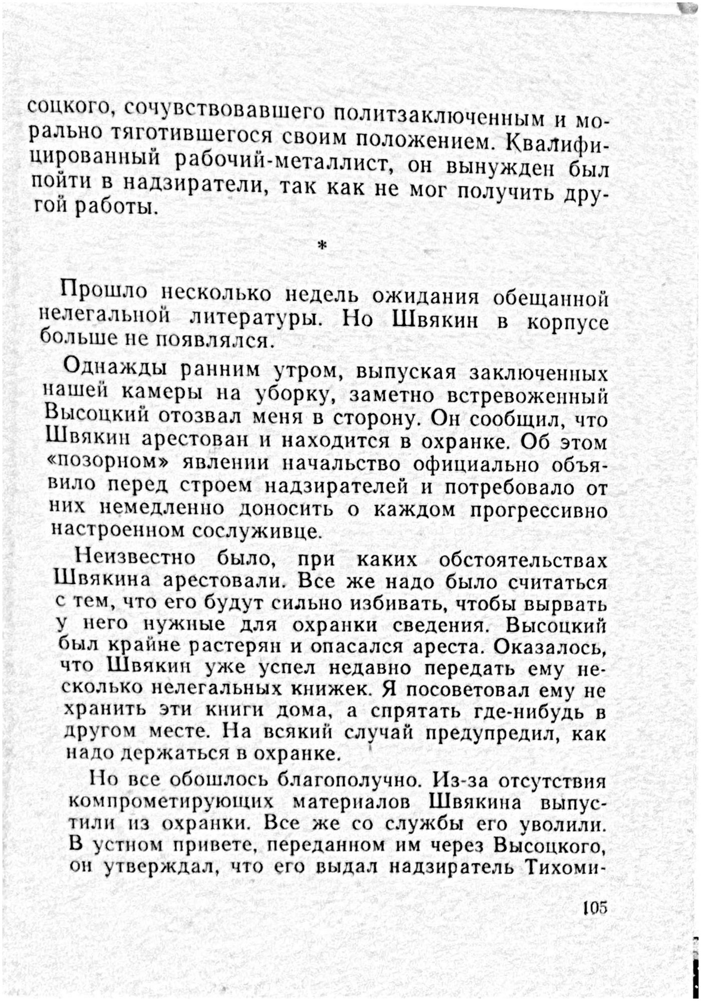 | s004_p025 | girsh 4 of x.pdf | 25 | preview | ocr | local | not_flagged | 5 ров, который потом открыто проявил себя палачом политзаключенных. А спустя полгода Владимира Швякина уже ви. дели среди политических заключенных, находиз. шихся во втором корпусе. За участие в работе под. польной парт |