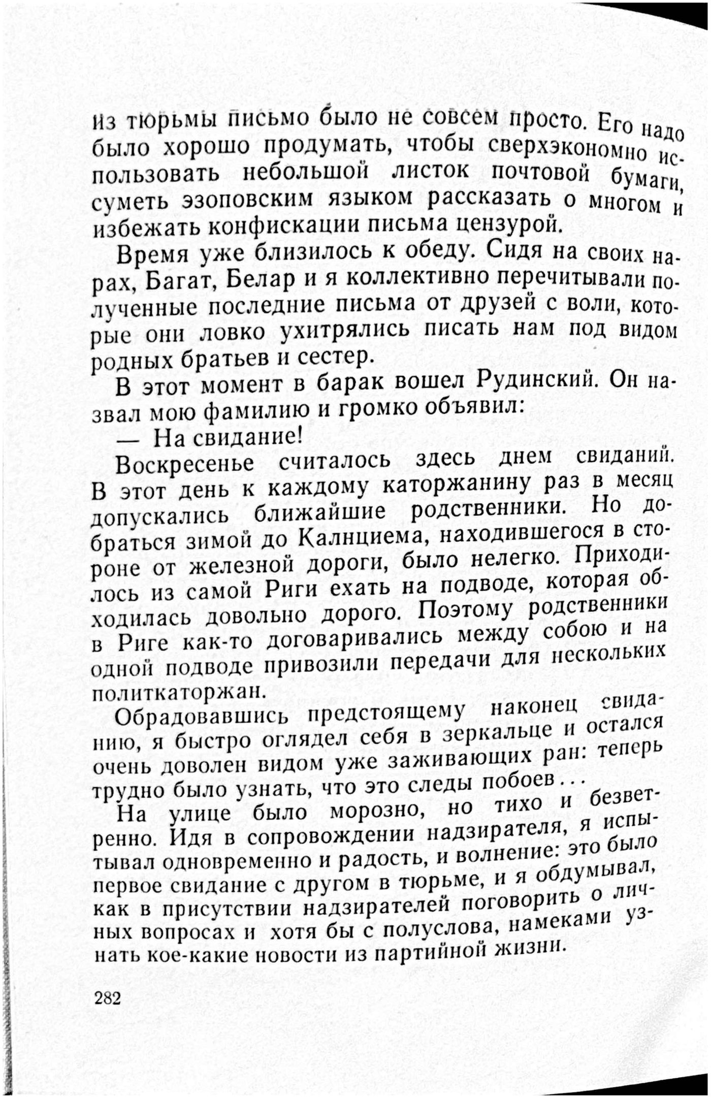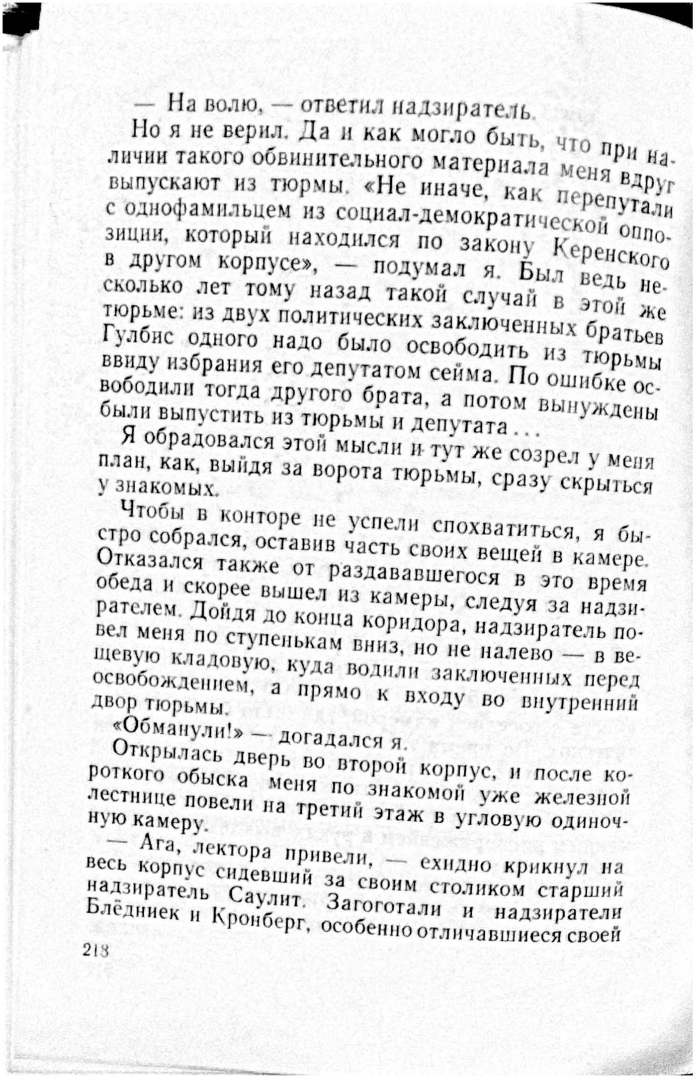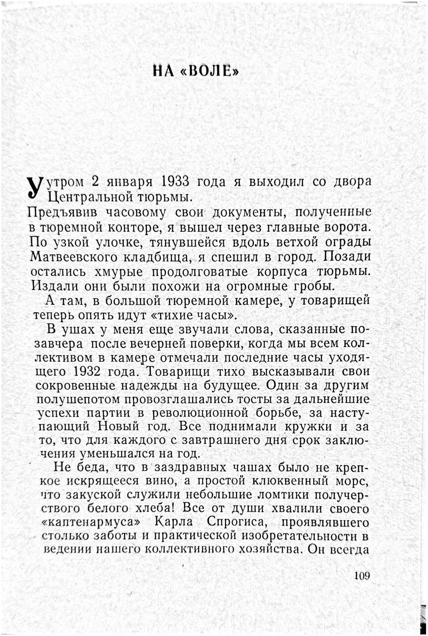 | s009_p018 | girsh 9 of x.pdf | 18 | preview | ocr | local | not_flagged | ==> м —ы=нынь «НА СВИДАНИЕ, Окончилась наконец неделя, которая казалась в карцере бесконечно длинной. Явившийся в шесть ча- сов утра надзиратель, весело посвистывая в кори- доре, открыл дверь карцера и выпустил меня. Я |