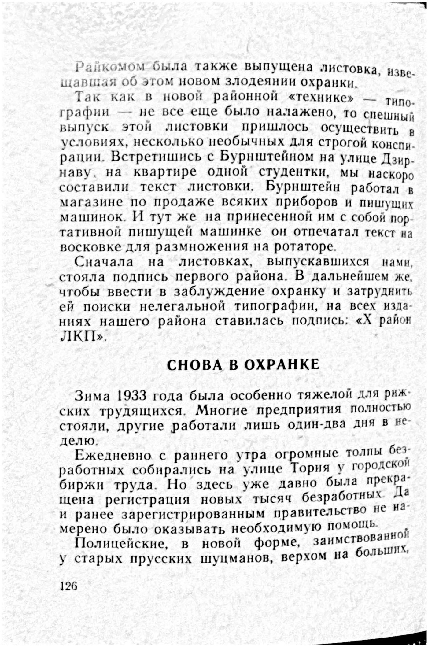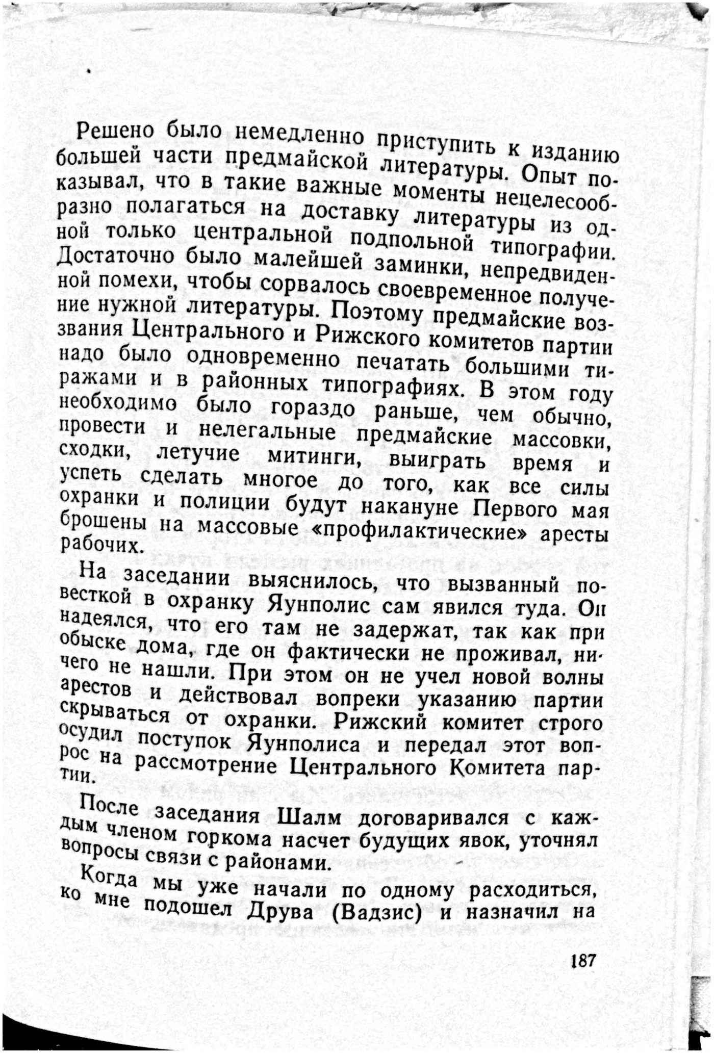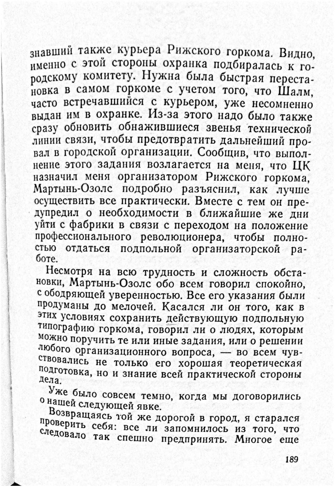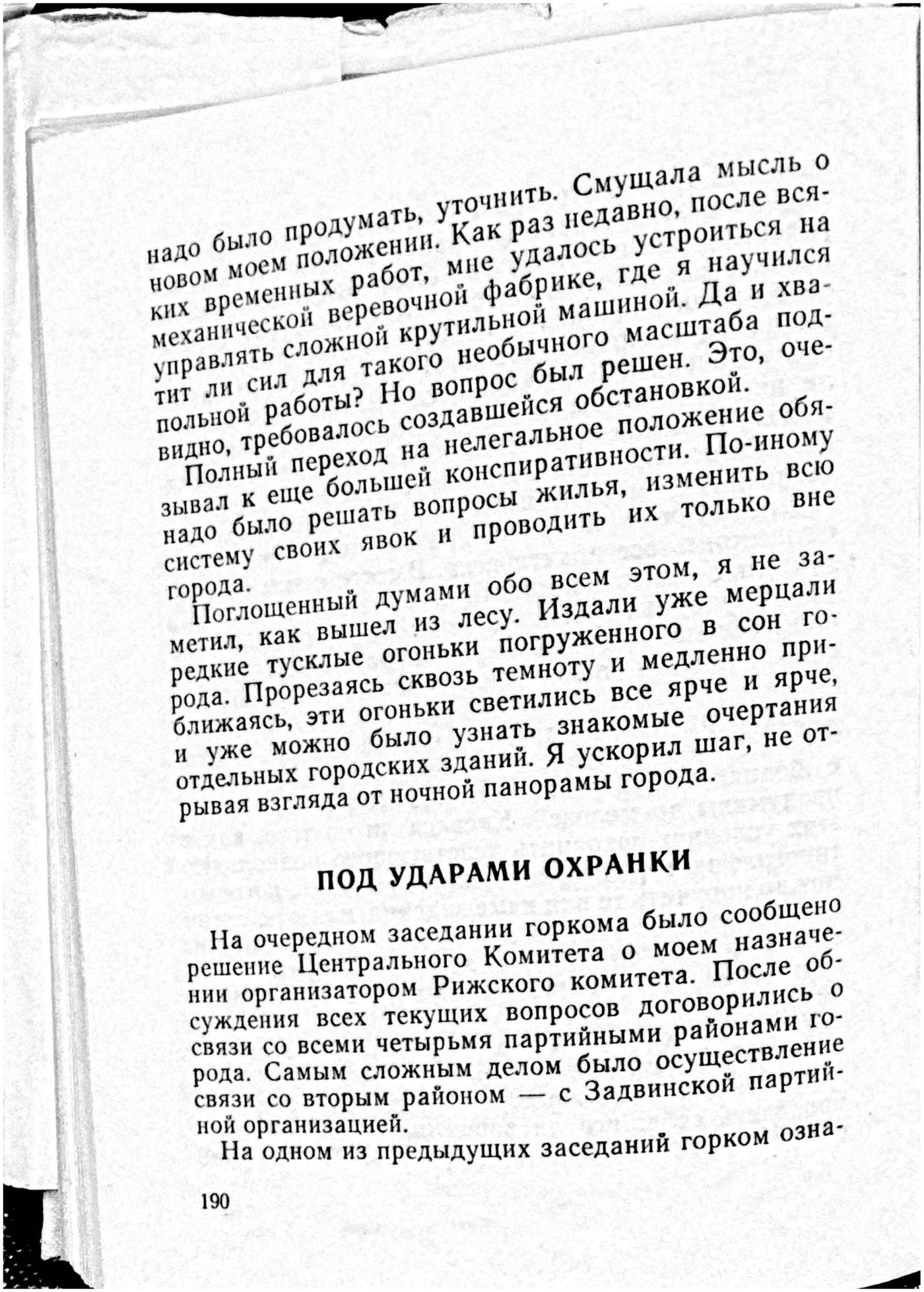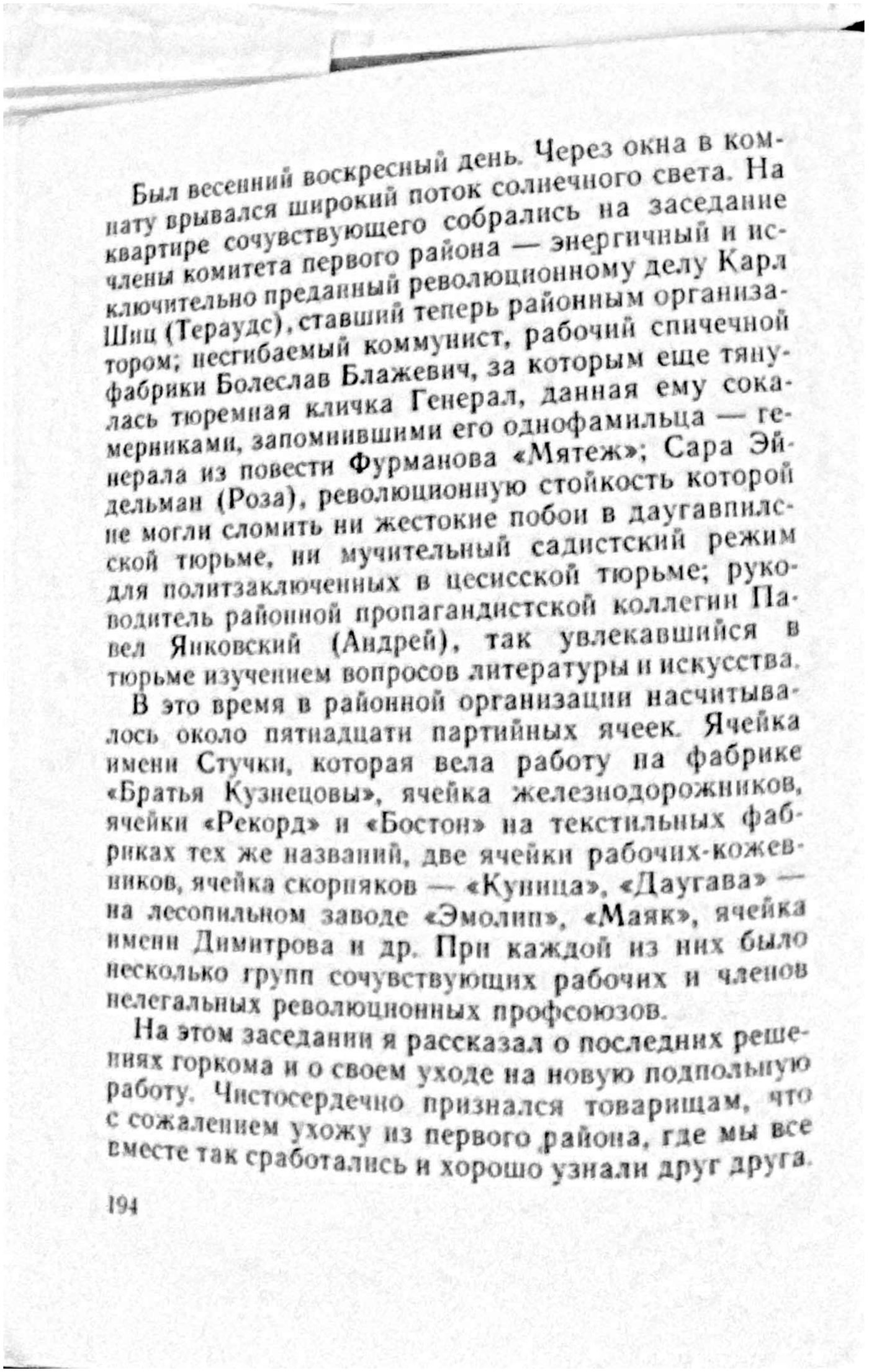 | s009_p040 | girsh 9 of x.pdf | 40 | preview | ocr | local | not_flagged | 7 И | Прошло немного времени С тех пор, как я был направлен на работу в партийный комитет двенад- цатого района. Это цифровое обозначение района } было условным — для маскировки от охранки. Фактически тогда в Риге не бы |