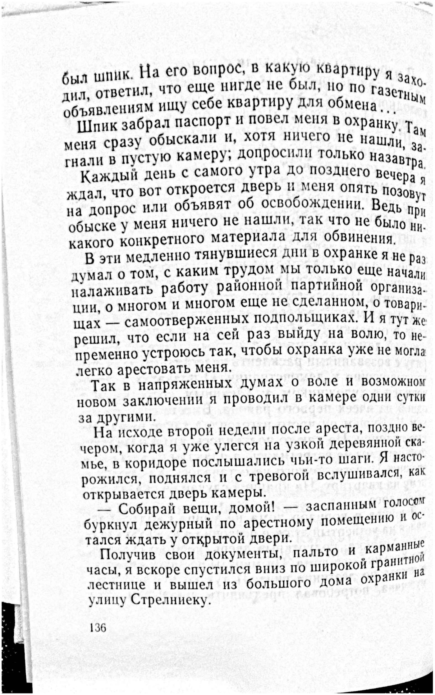 | s002_p008 | girsh 2 of x.pdf | 8 | preview | ocr | local | not_flagged | были произведены обыски на квартирах мкогих чле- нов секции и арестовано около тридцати человек. Днем начались допросы. Меня ввели в небольшую комнату, через окно которой виднелись лишь черепичные крыши сосед- НИХ ДОМО |