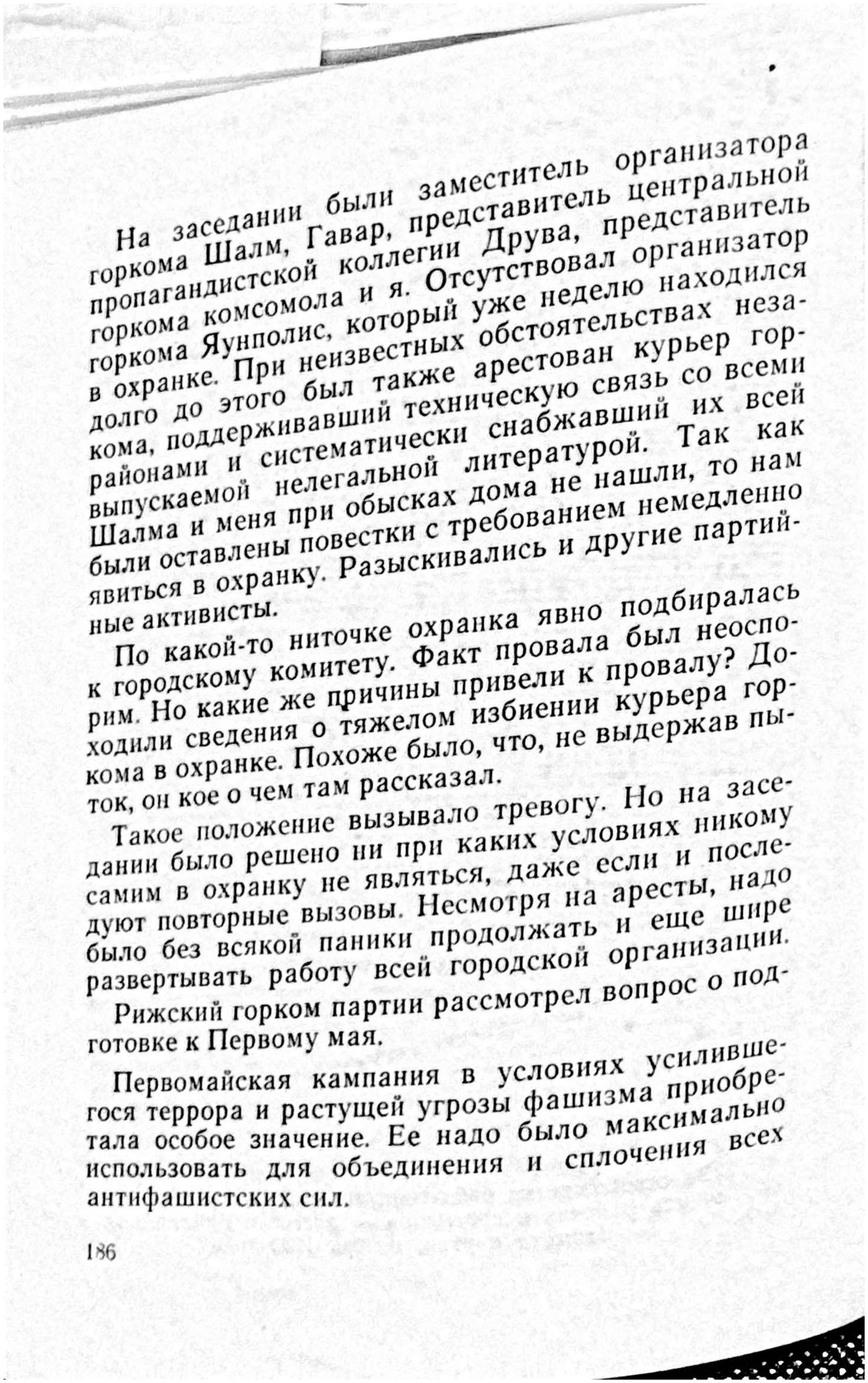 | s009_p023 | girsh 9 of x.pdf | 23 | preview | ocr | local | not_flagged | ож тивления и призвала внутренней дисциплиной кол. лектива еще больше крепить его силу в дальнейшей борьбе за жизнь, за сохранение себя для партии Надо было также всеми возможными путями не. медленно сообщить Рижскому ко |