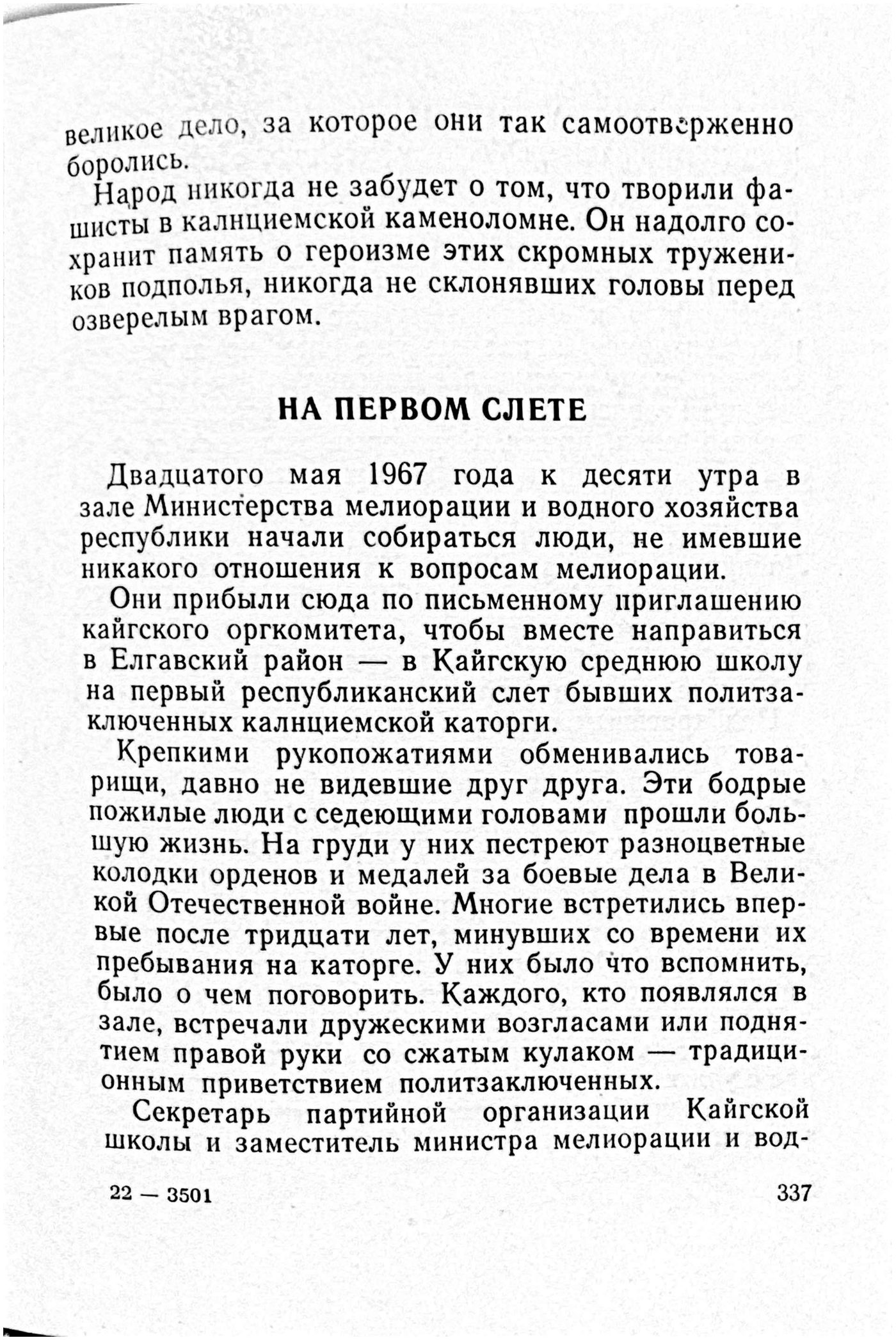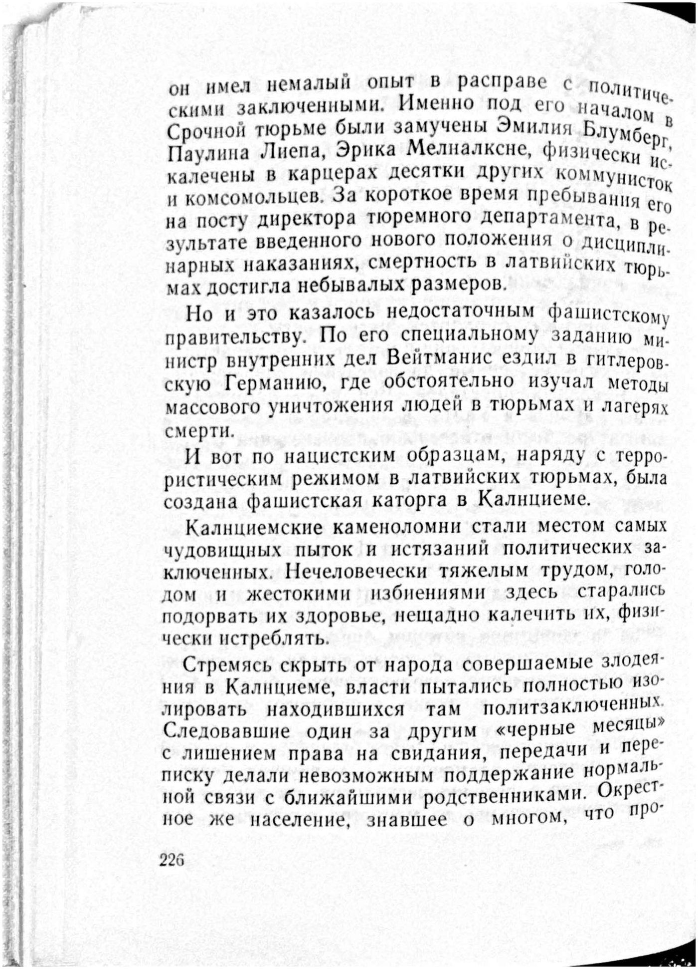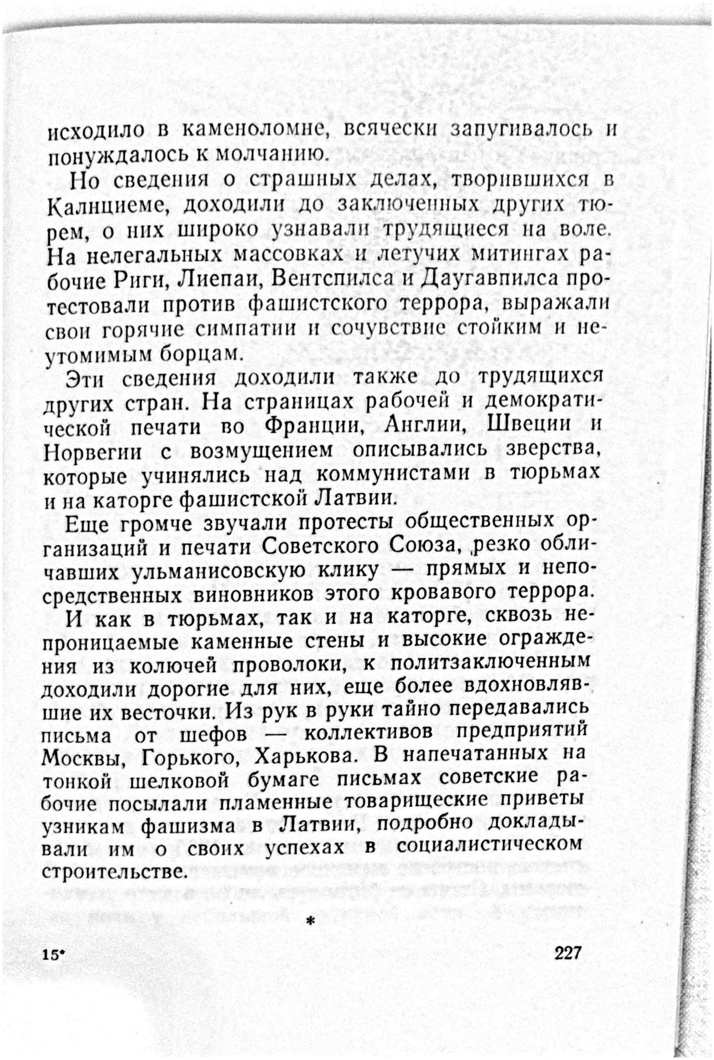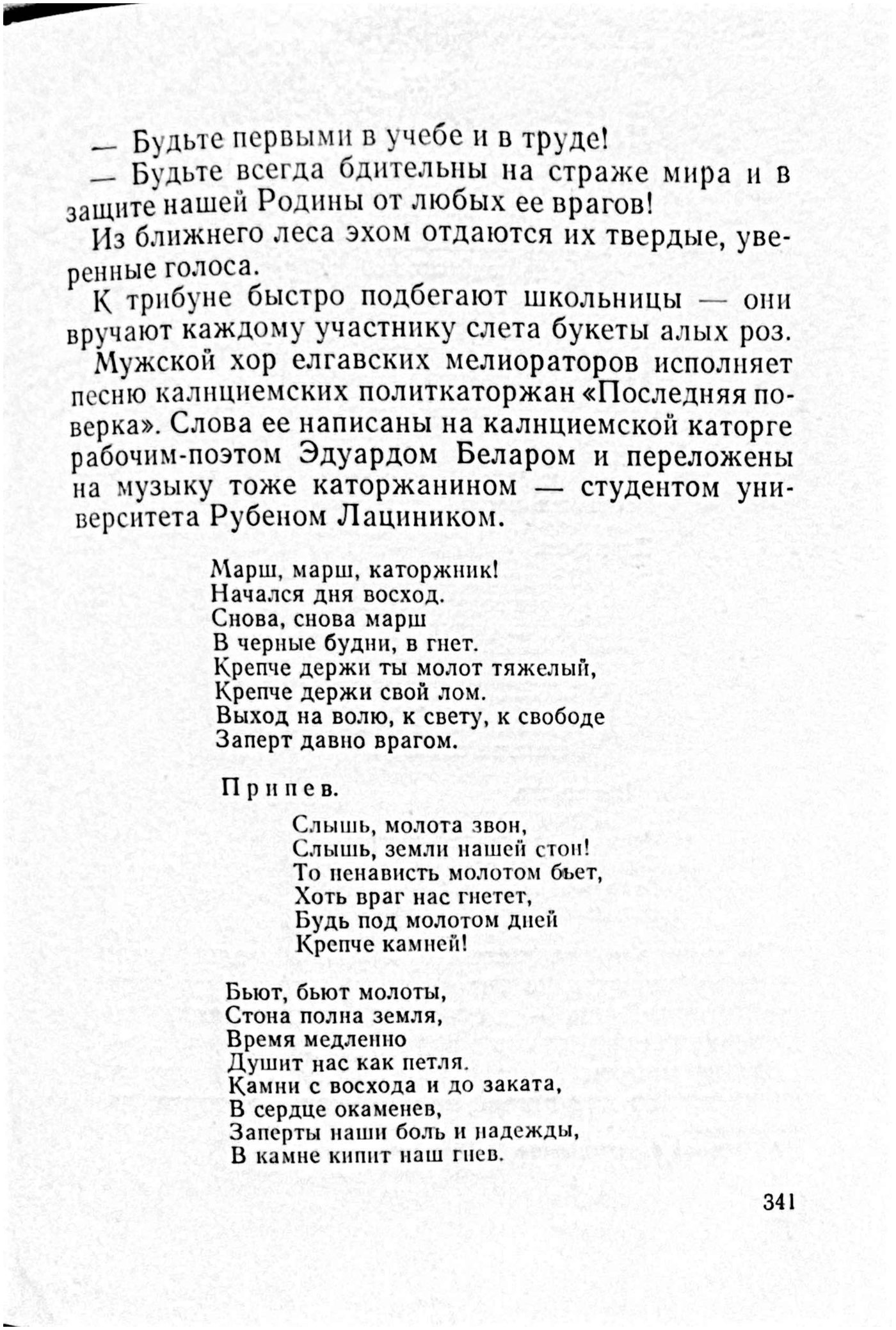 | s010_p025 | girsh 10 of x.pdf | 25 | preview | ocr | local | not_flagged | этой реки, как и повсюду на советской земле, Звучат песни об освобожденном труде, о мире. Вместе с фашистской Латвией навеки канула в небытие и калнциемская каторга. И я вспомнил близкие и родные слова песни калн- цием |