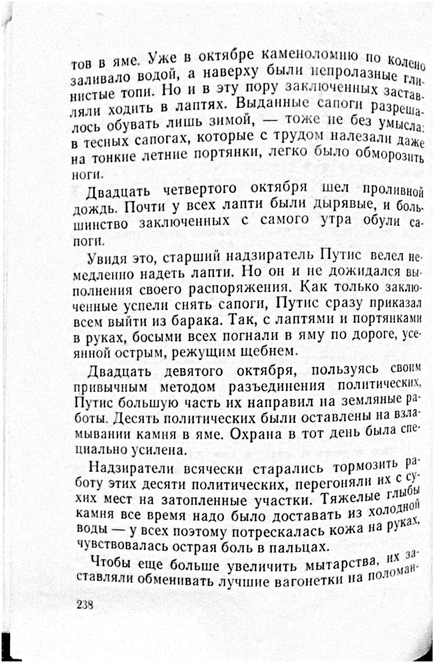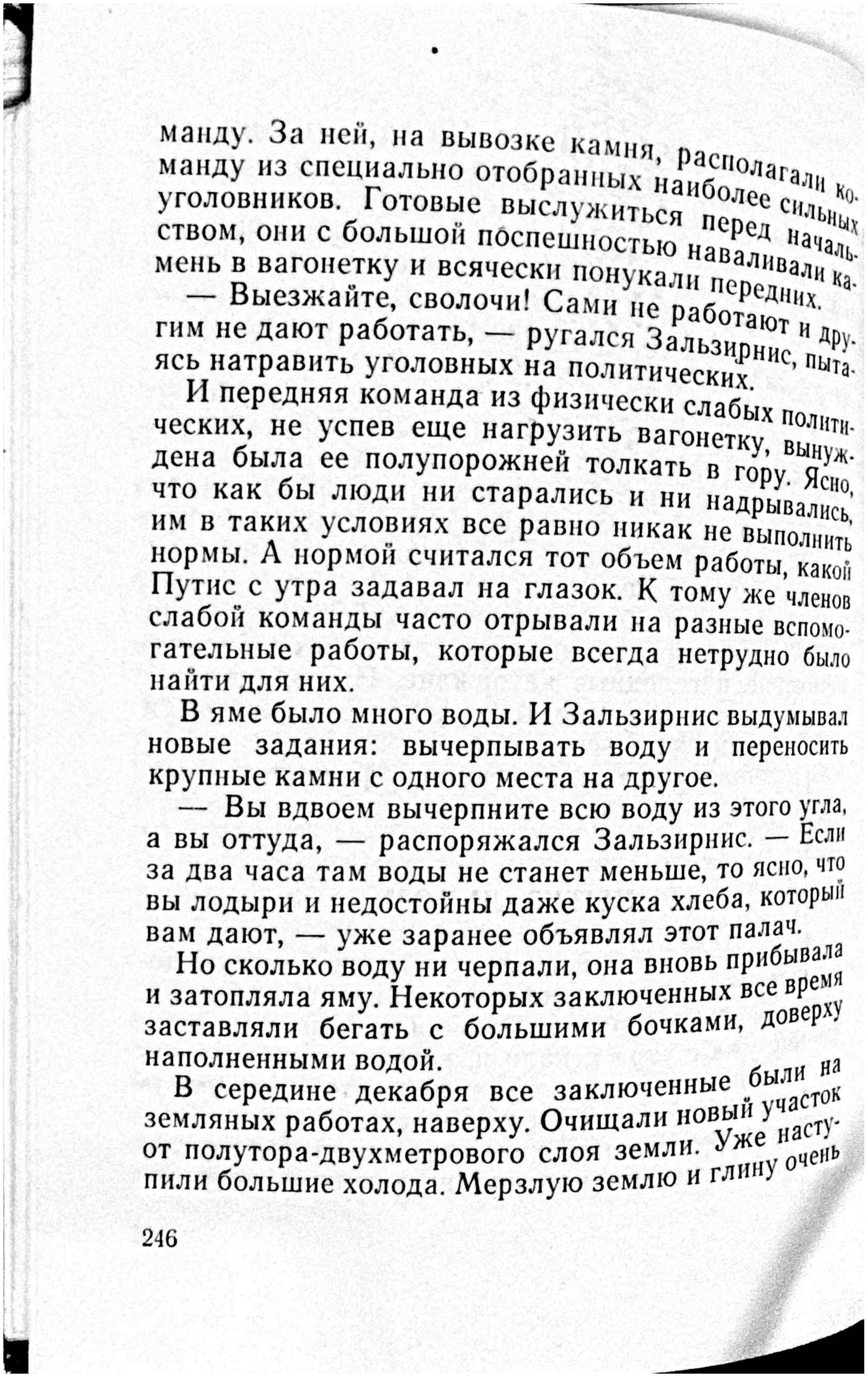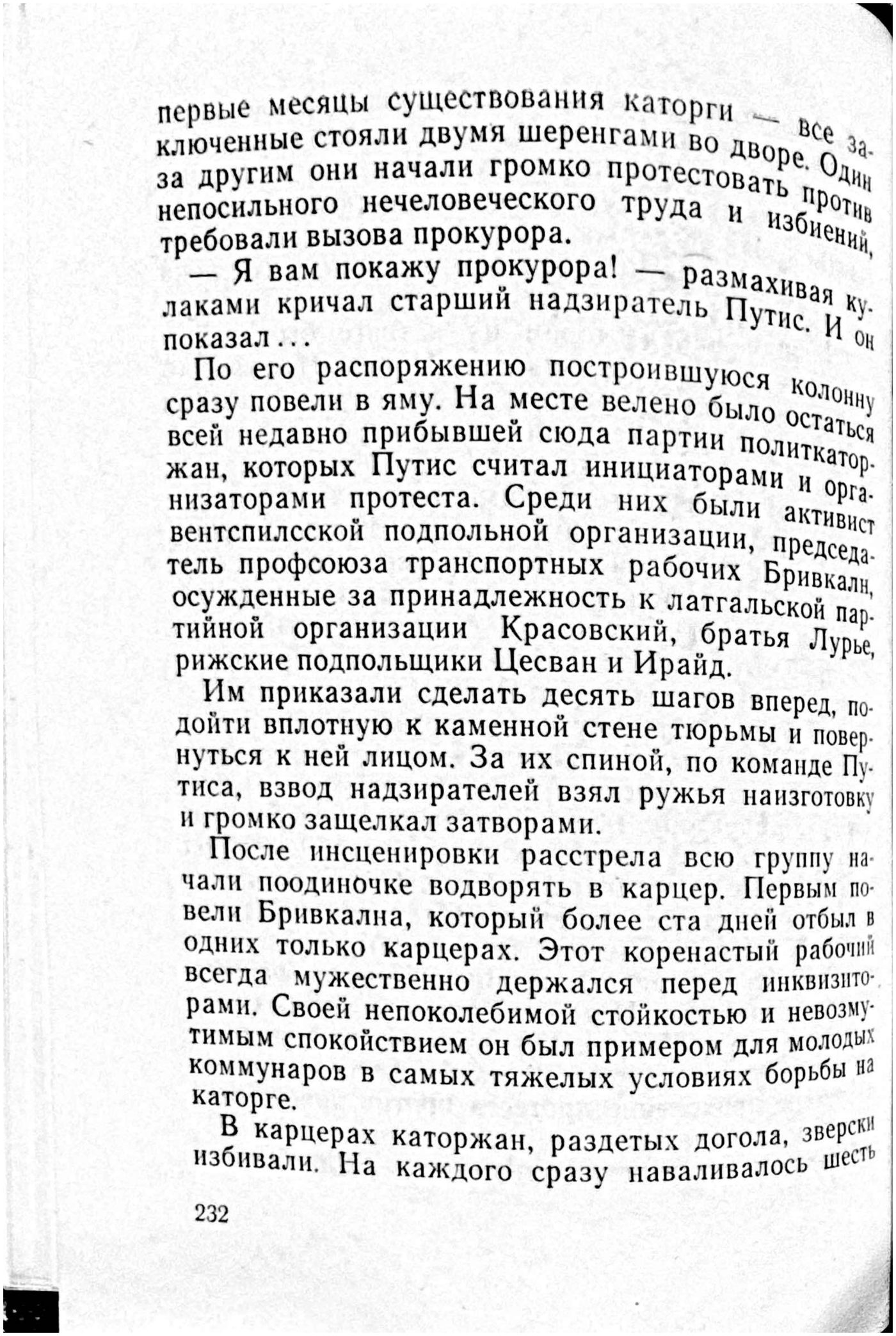 | s008_p026 | girsh 8 of x.pdf | 26 | preview | ocr | local | not_flagged | старший надзиратель Путис кулаками бил заклю- ченного, ставшего в шеренге не на свое место. Пятнадцатого февраля заболел политический Фридрихсон. В тяжелом состоянии, с высокой тем- пературой его заставили работать в ям |