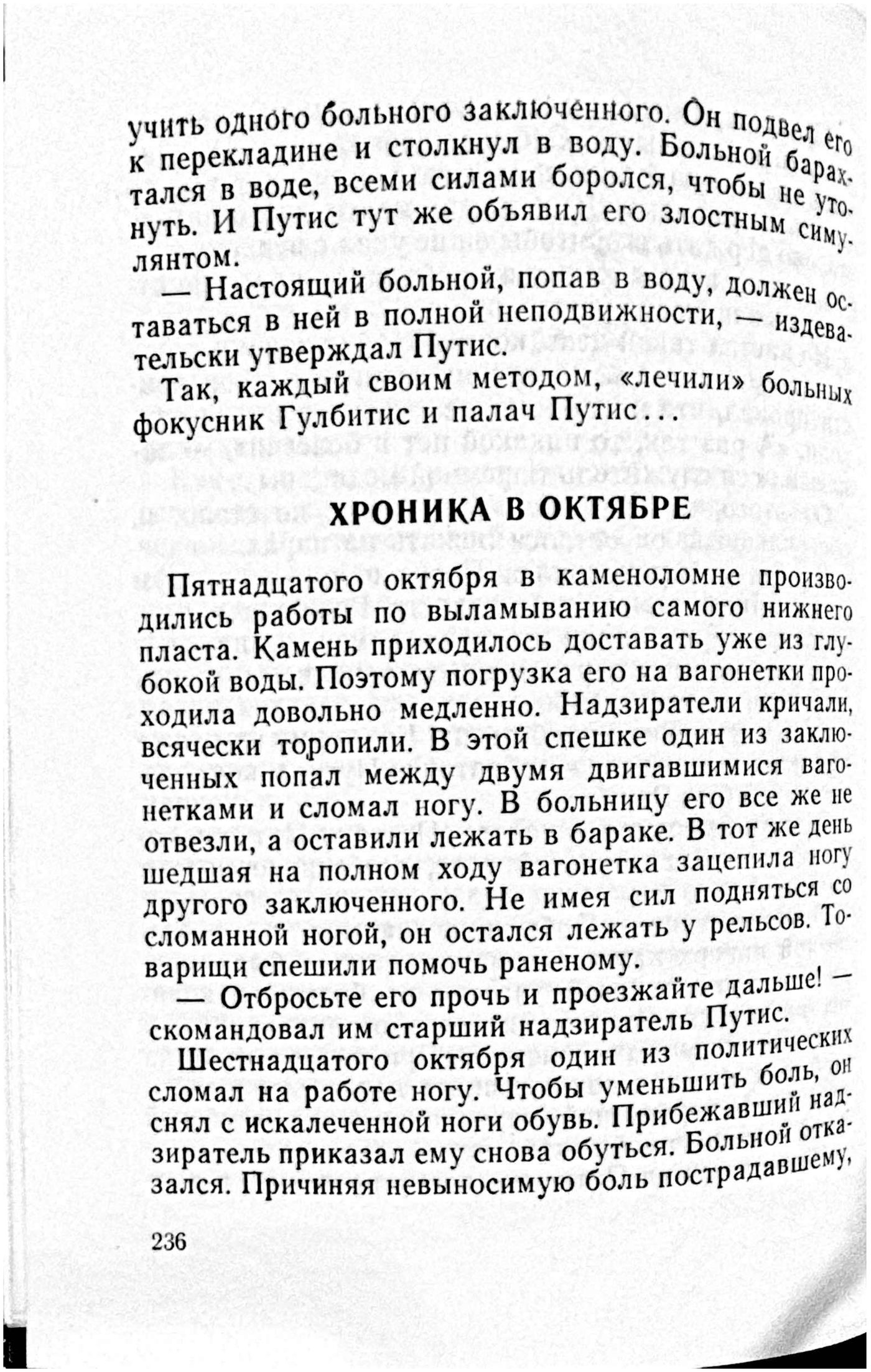| s008_p028 | girsh 8 of x.pdf | 28 | preview | ocr | local | not_flagged | без какой-либо медицинской помощи. Только на пят- надцатый день после ранения его отправили в Цент- ральную тюрьму, в больницу. В этом месяце было меньше несчастных случаев. Но, как и прежде, продолжались истязания и ра |