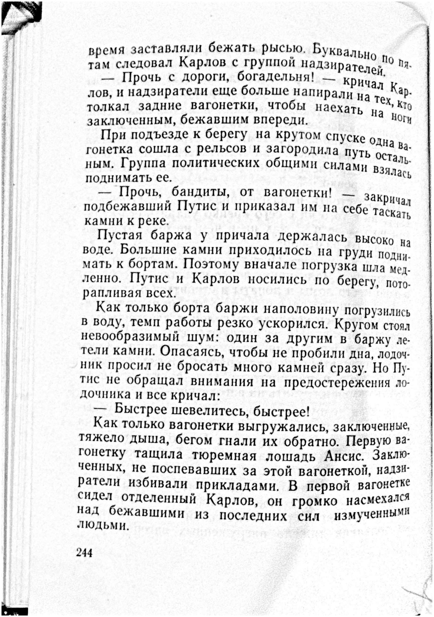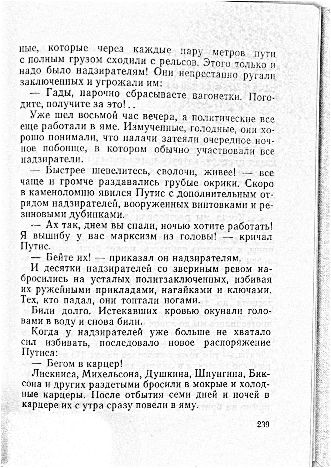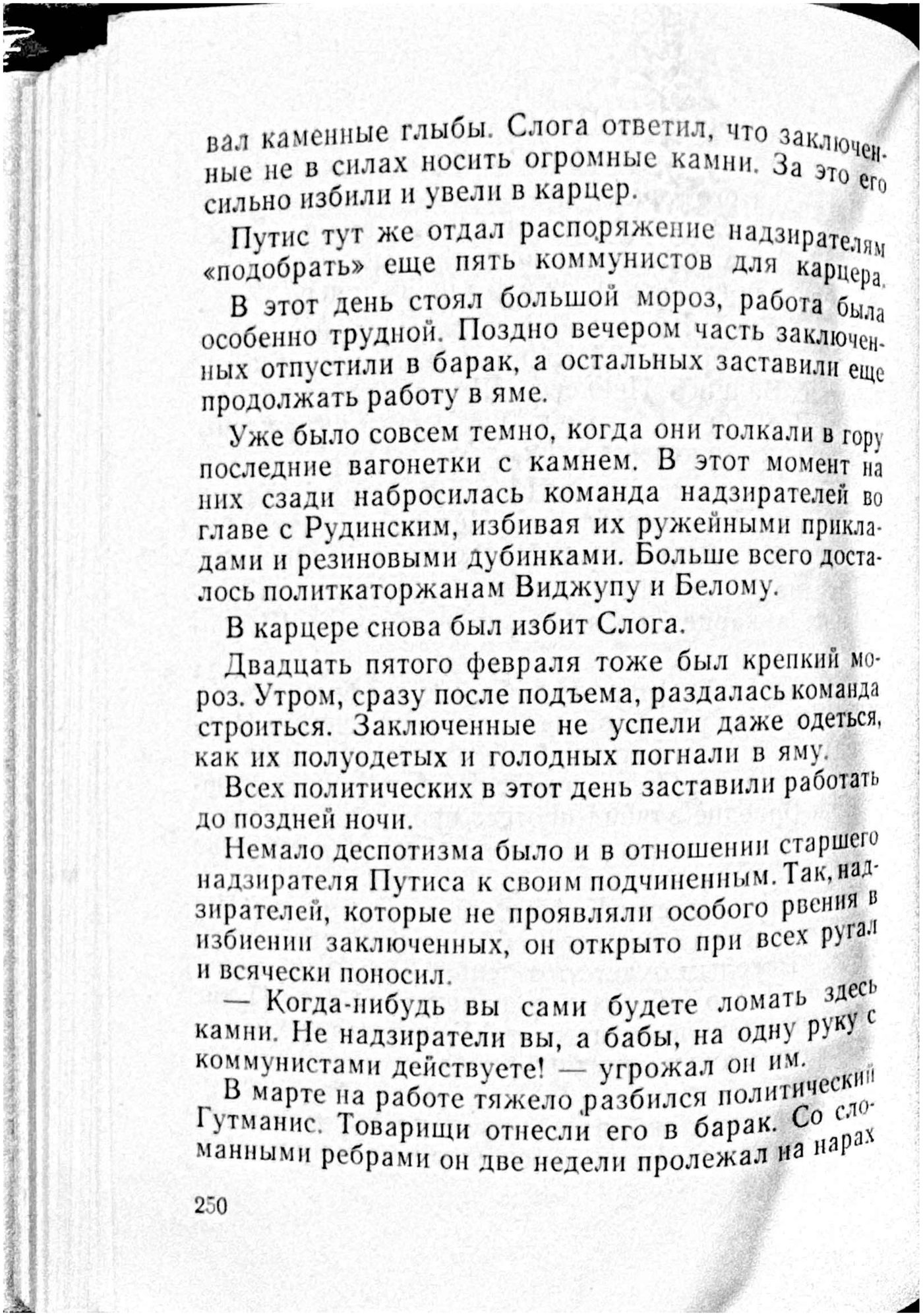 | s008_p027 | girsh 8 of x.pdf | 27 | preview | ocr | local | not_flagged | вал каменные глыбы. Слога ответил, что аклки ные не в силах носить огромные камни. За эт ен. | сильно избили и увели в карцер. его Путис тут же отдал распоряжение надзирателя, | ‹подобрать» еще пять коммунистов для карце |