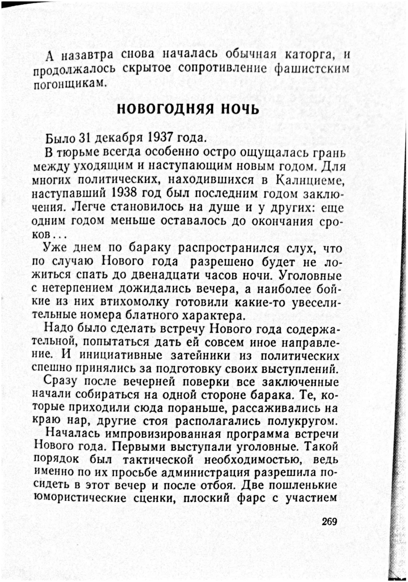| s009_p008 | girsh 9 of x.pdf | 8 | preview | ocr | local | not_flagged | == А назавтра снова началась обычная каторга, и продолжалось скрытое сопротивление фашистским погонщикам, НОВОГОДНЯЯ НОЧЬ Было 31 декабря 1937 года. В тюрьме всегда особенно остро ощущалась грань между уходящим и нас |