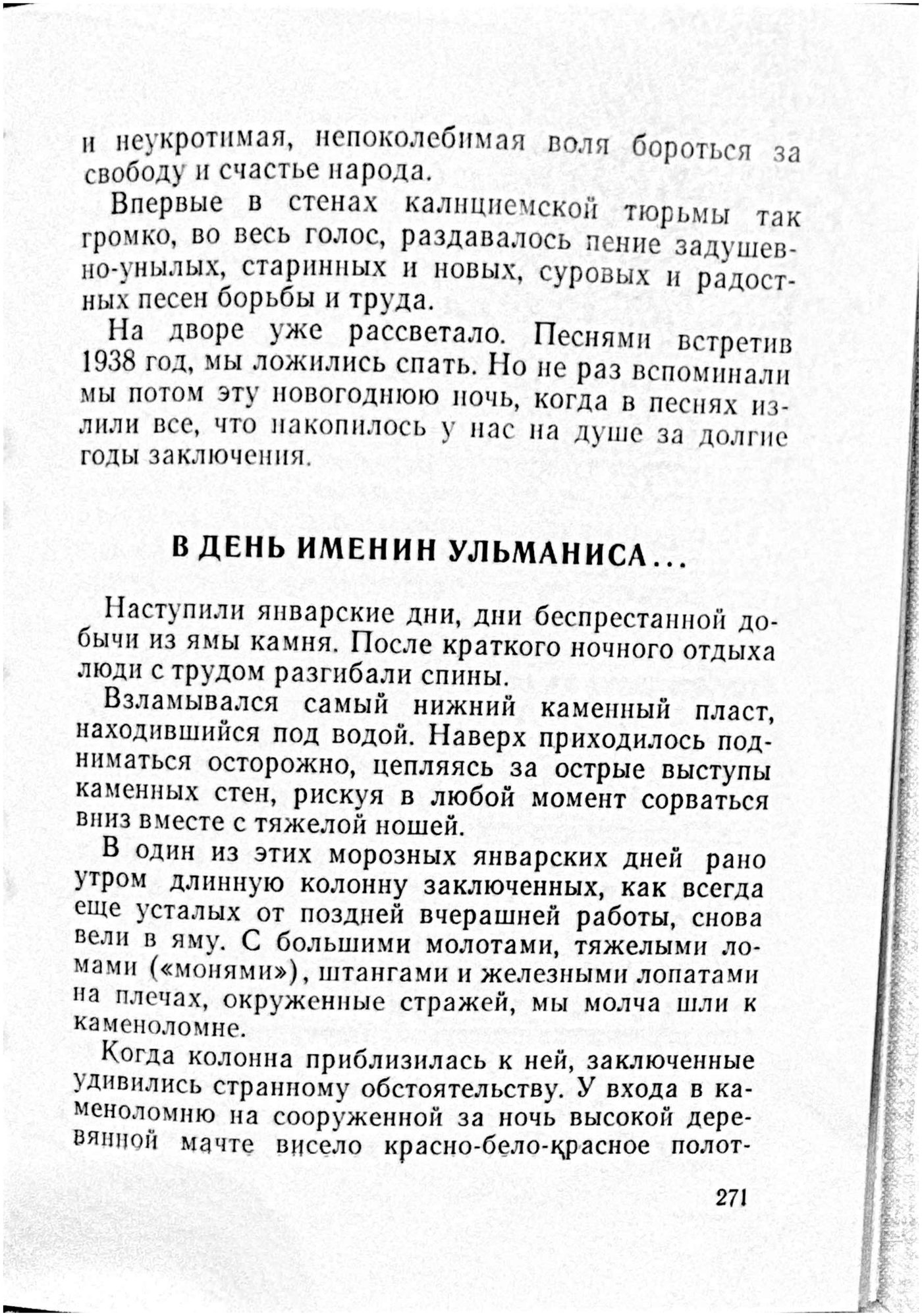 | s009_p010 | girsh 9 of x.pdf | 10 | preview | ocr | local | not_flagged | и неукротимая, непоколебимая воля бороться за свободу и счастье народа. Впервые в стенах калнциемской тюрьмы так громко, во весь голос, раздавалось пение задушев- но-унылых, старинных и новых, суровых и радост- ных песе |