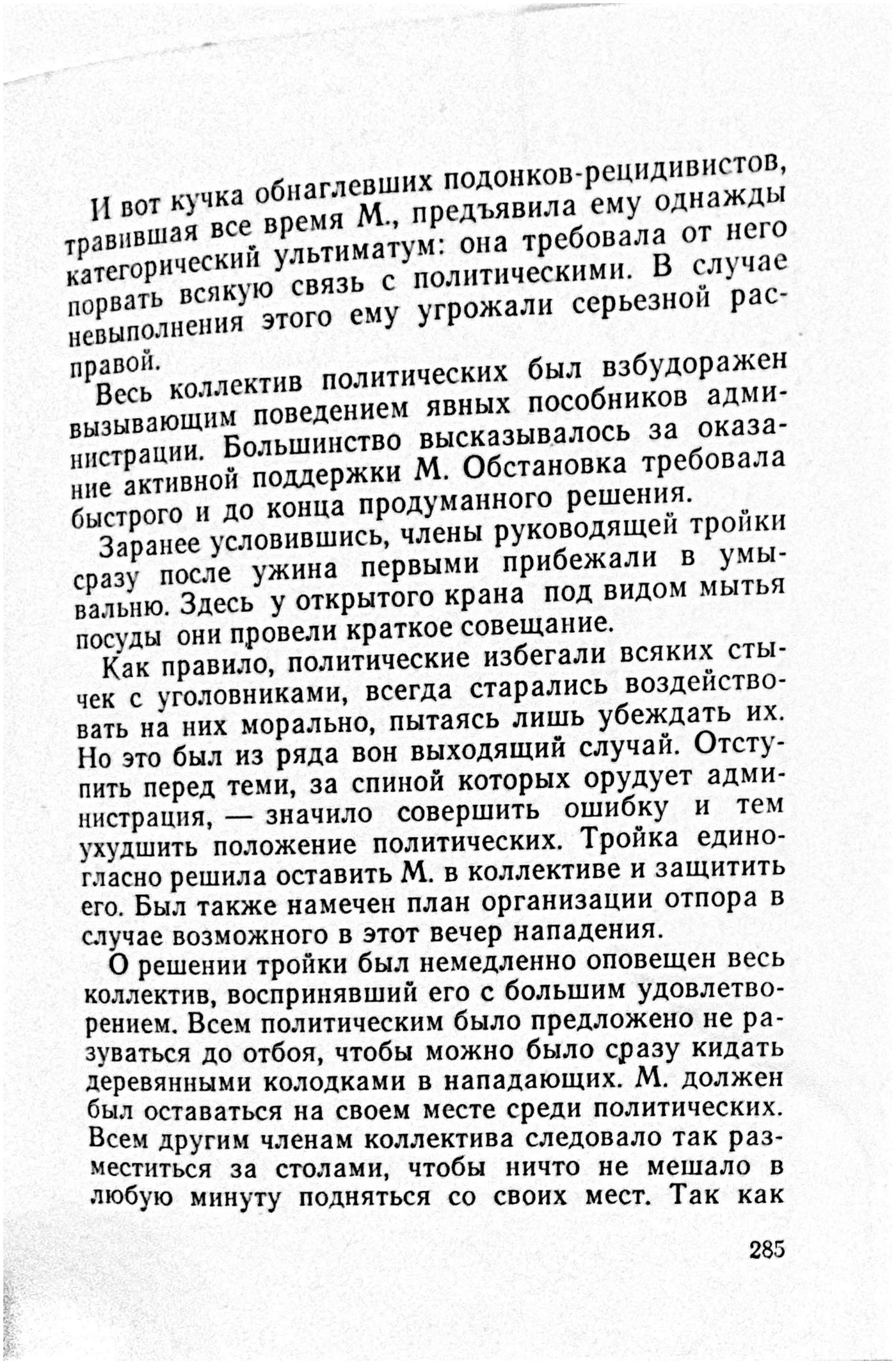 | s009_p020 | girsh 9 of x.pdf | 20 | preview | ocr | local | not_flagged | № ола каждом из нас! Идейная сплоченность и железная спаянность политзаключенных, готовность к взаим- ной выручке и защите укрепляли в каждом веру в коллектив, сила которого была неодолима. Вечером после поверки, когда |
