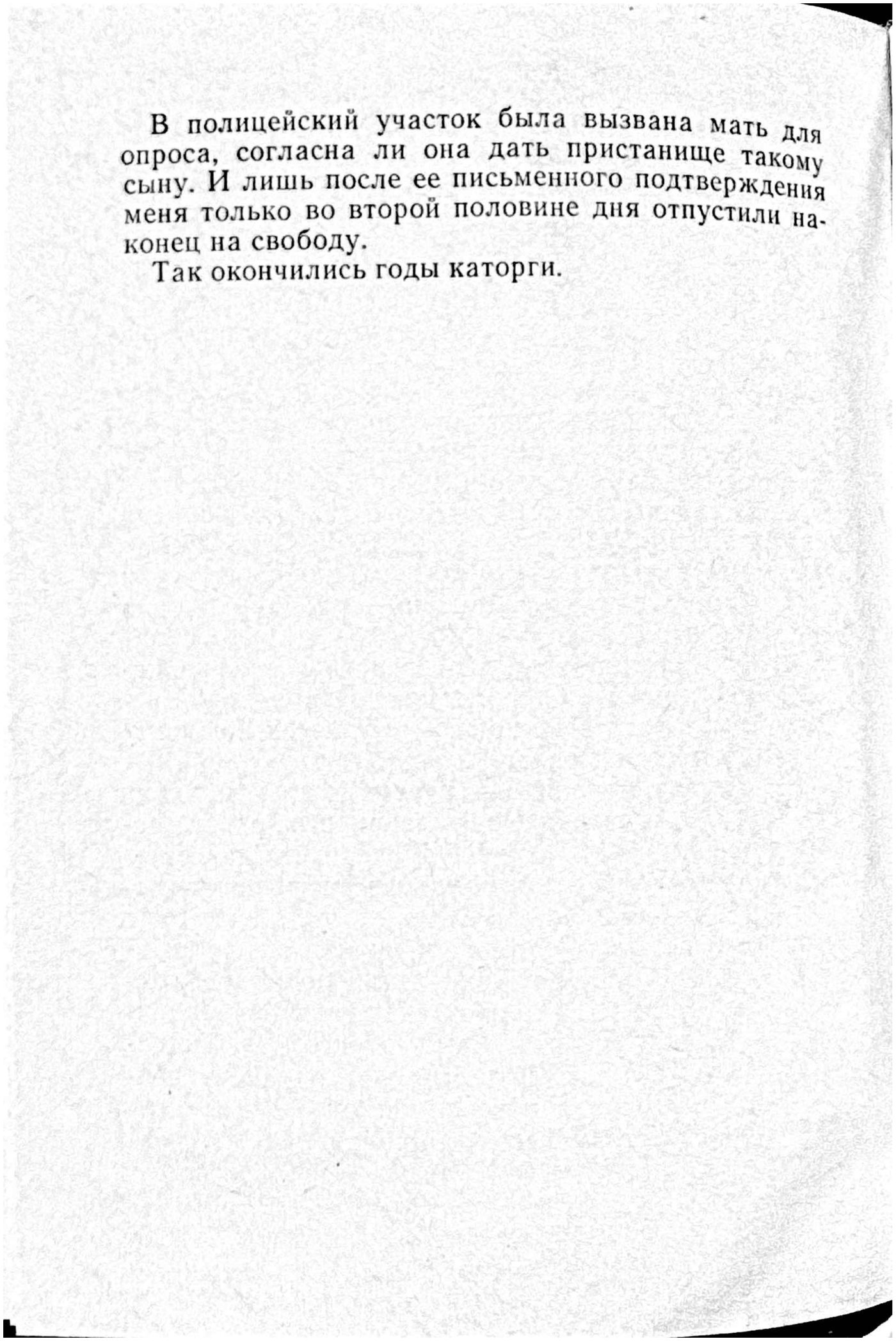 | s009_p033 | girsh 9 of x.pdf | 33 | preview | ocr | local | not_flagged | , р о - В полицейский участок была вызвана мать д опроса, согласна ли она дать пристанище к сыну. И лишь после ее письменного подтверждение | меня только во второй половине дня отпустили на. | конец на свободу. Так оконч |