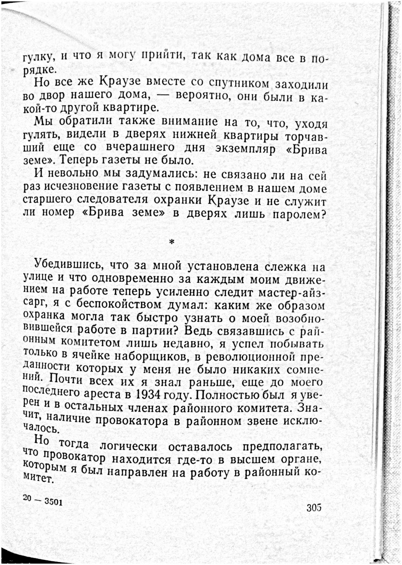 | s009_p042 | girsh 9 of x.pdf | 42 | preview | ocr | local | not_flagged | ть странным казалось то, что никогда не видно было жильцов этой квартиры. Один и тот же номер «Брива земе» нередко торчал в дверях целыми сут. ками. Однажды в воскресенье, выйдя с женой погулять, я издали увидел след |